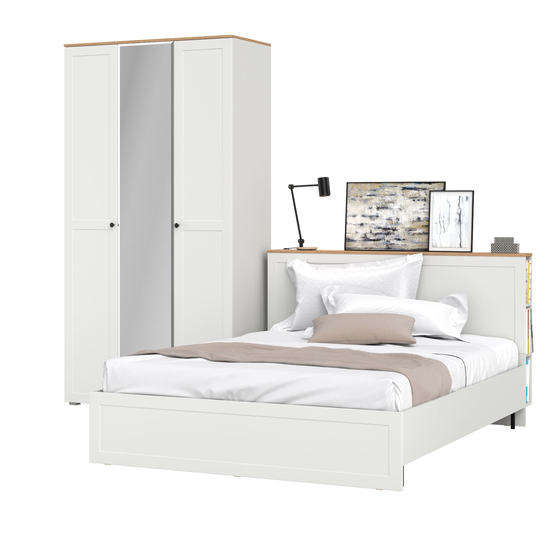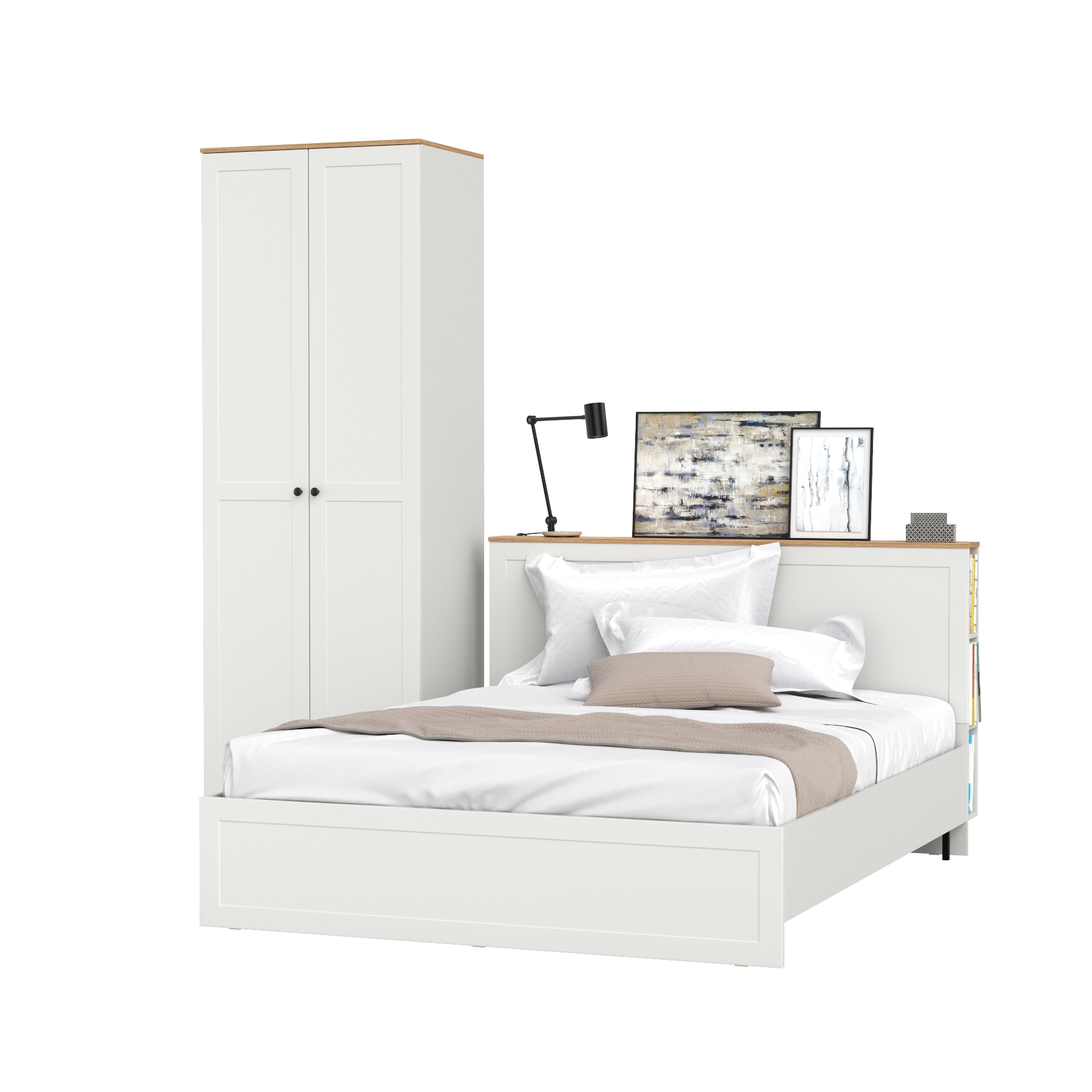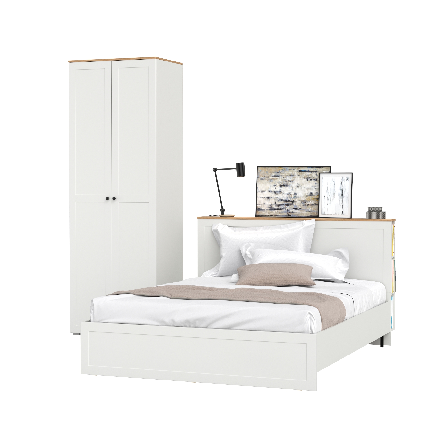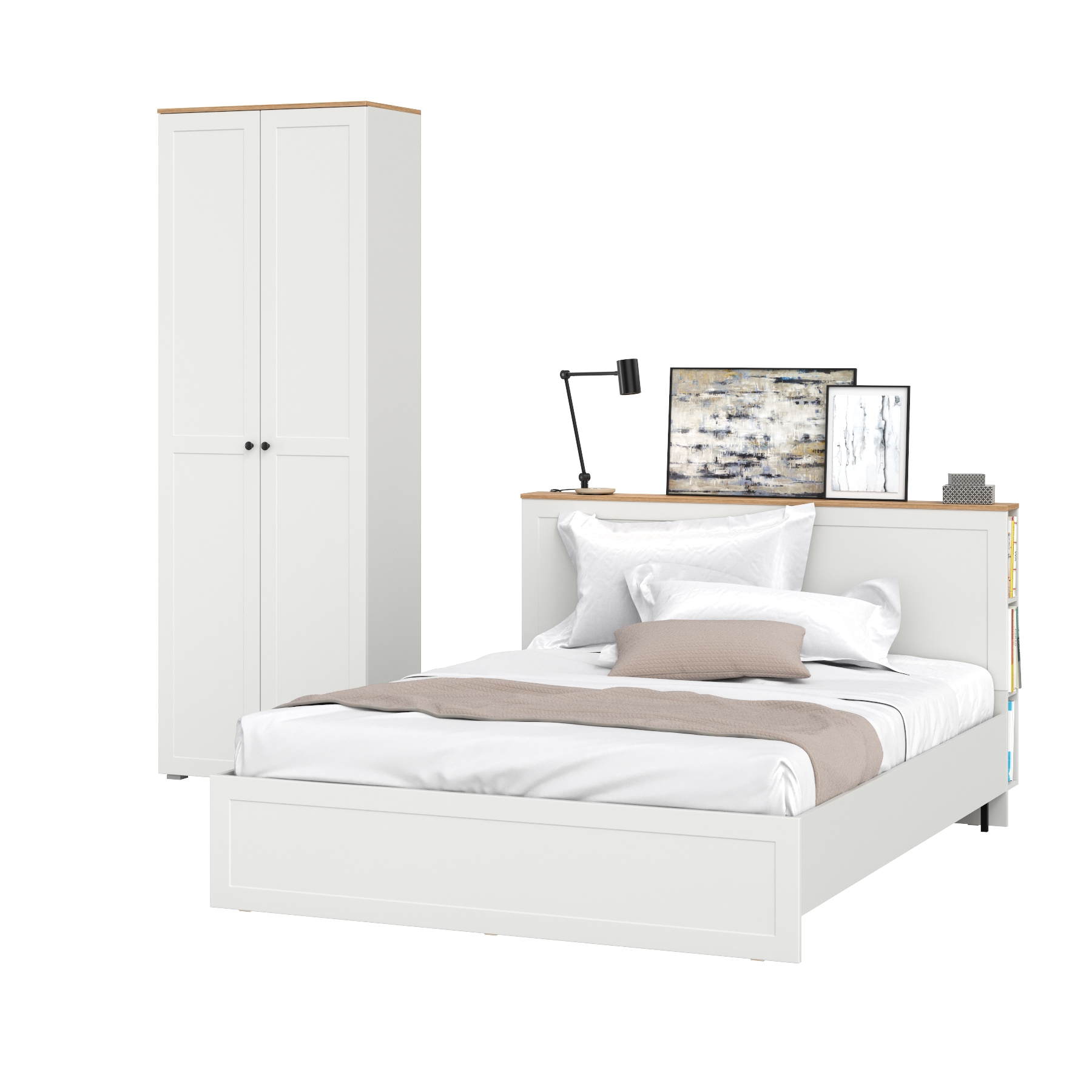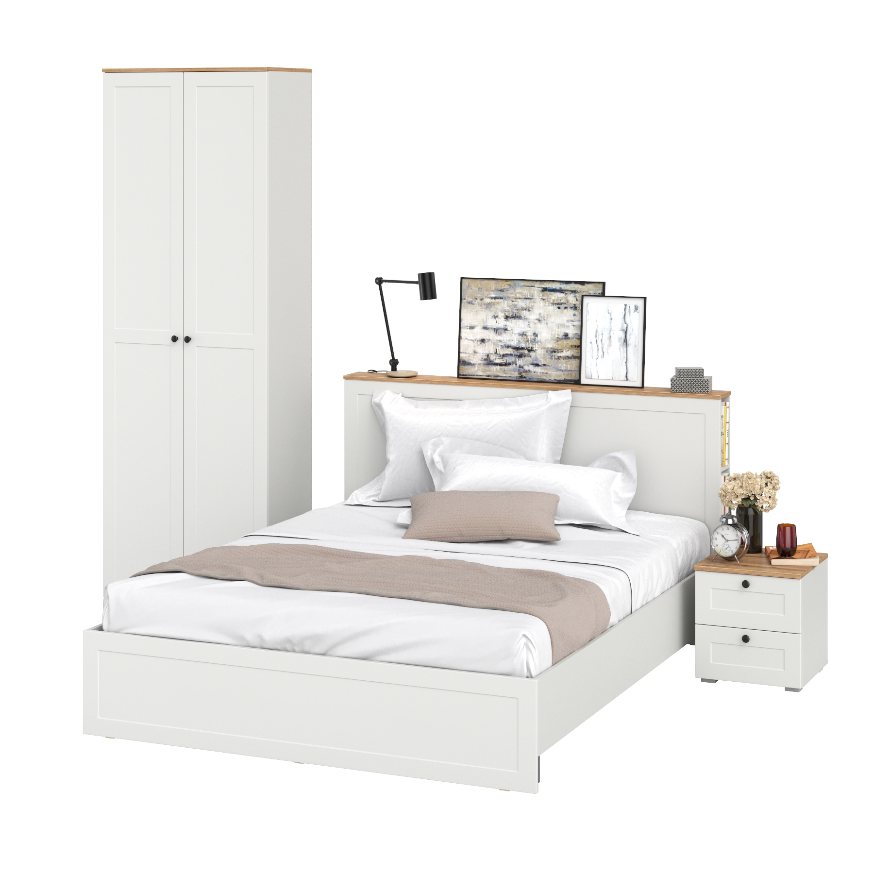 Двуспальная кровать Остин с ортопедическим основанием с платяным шкафом 13.224 и тумбой прикроватной