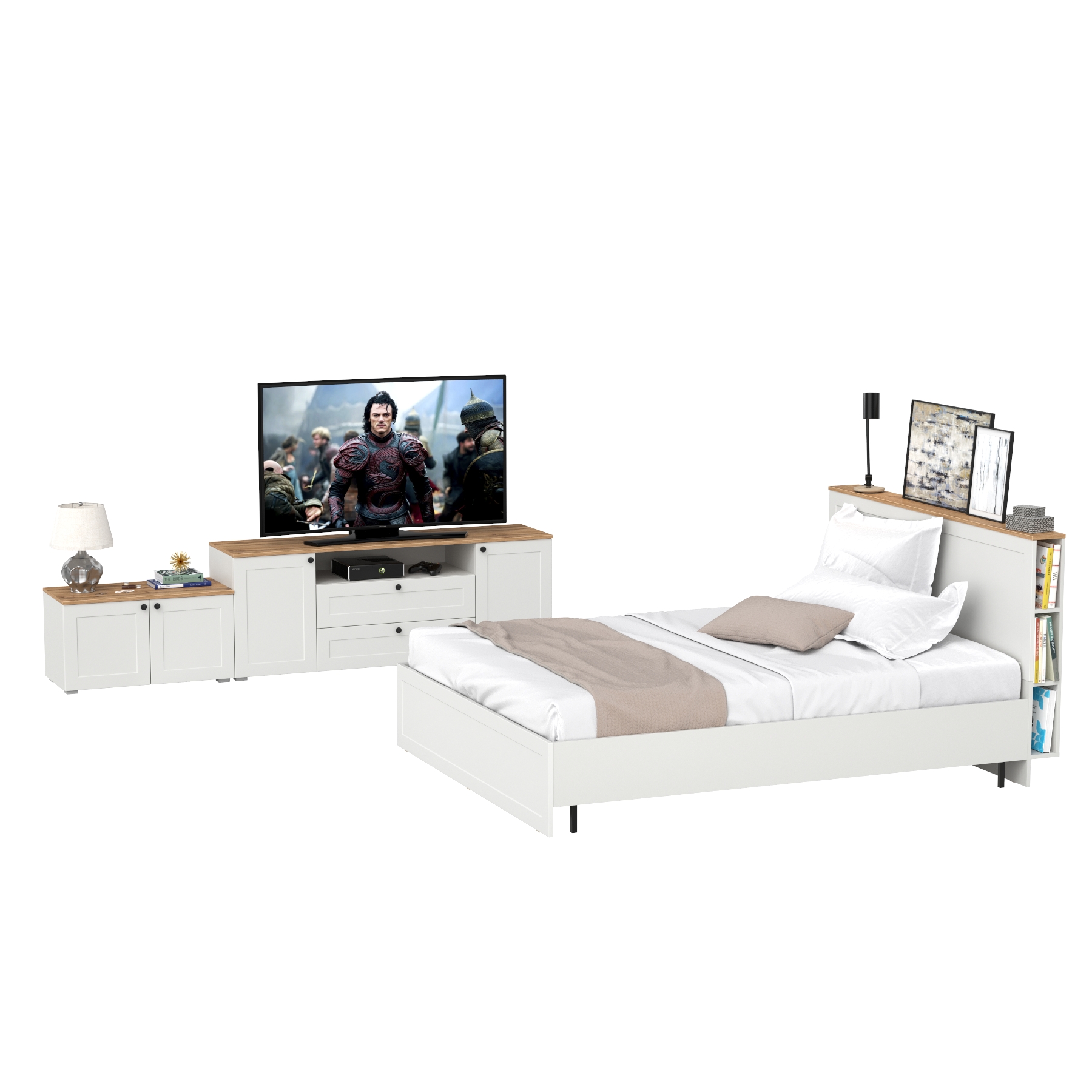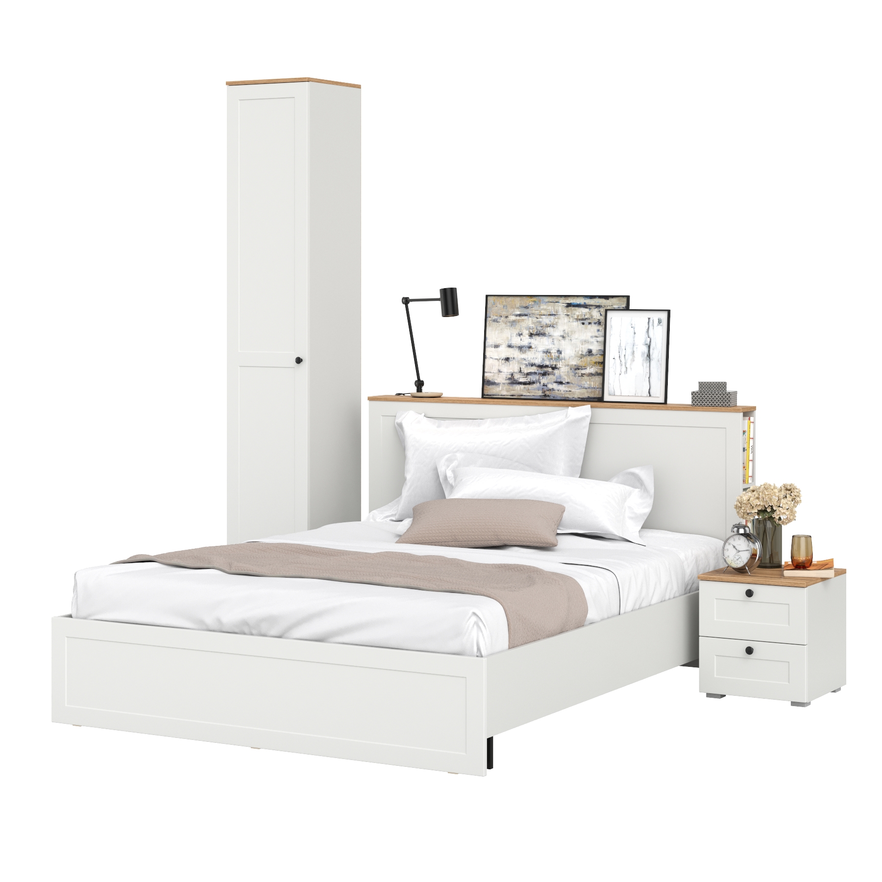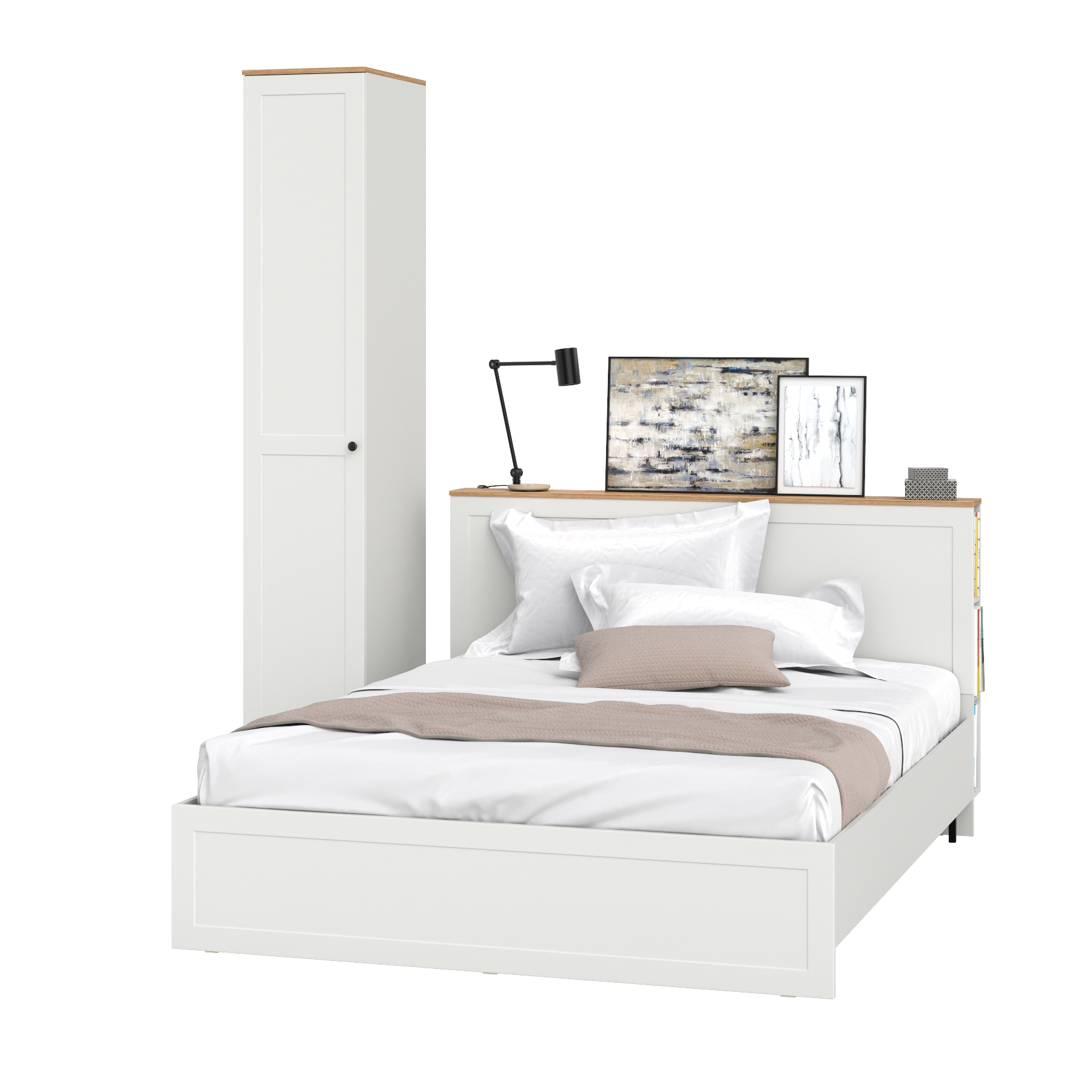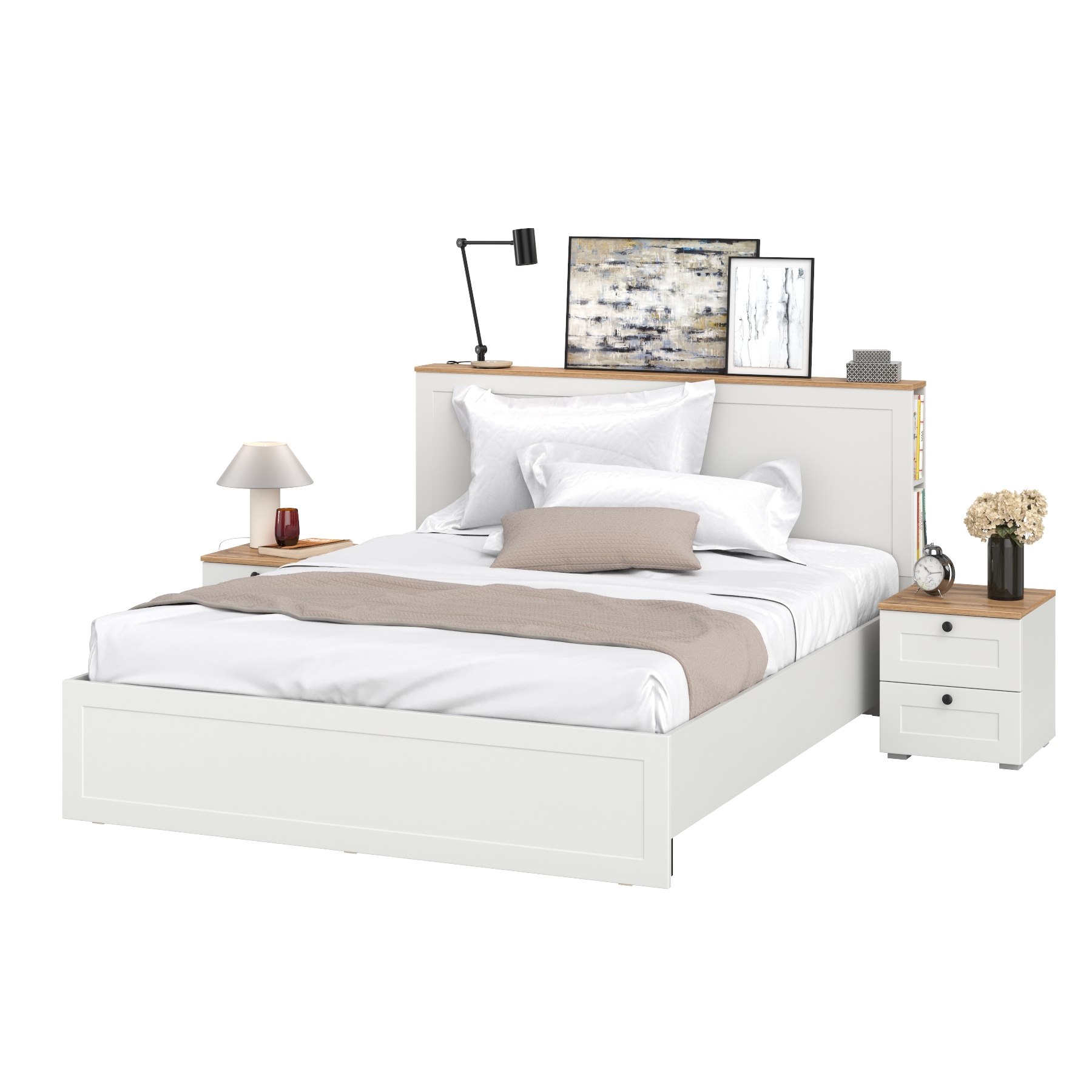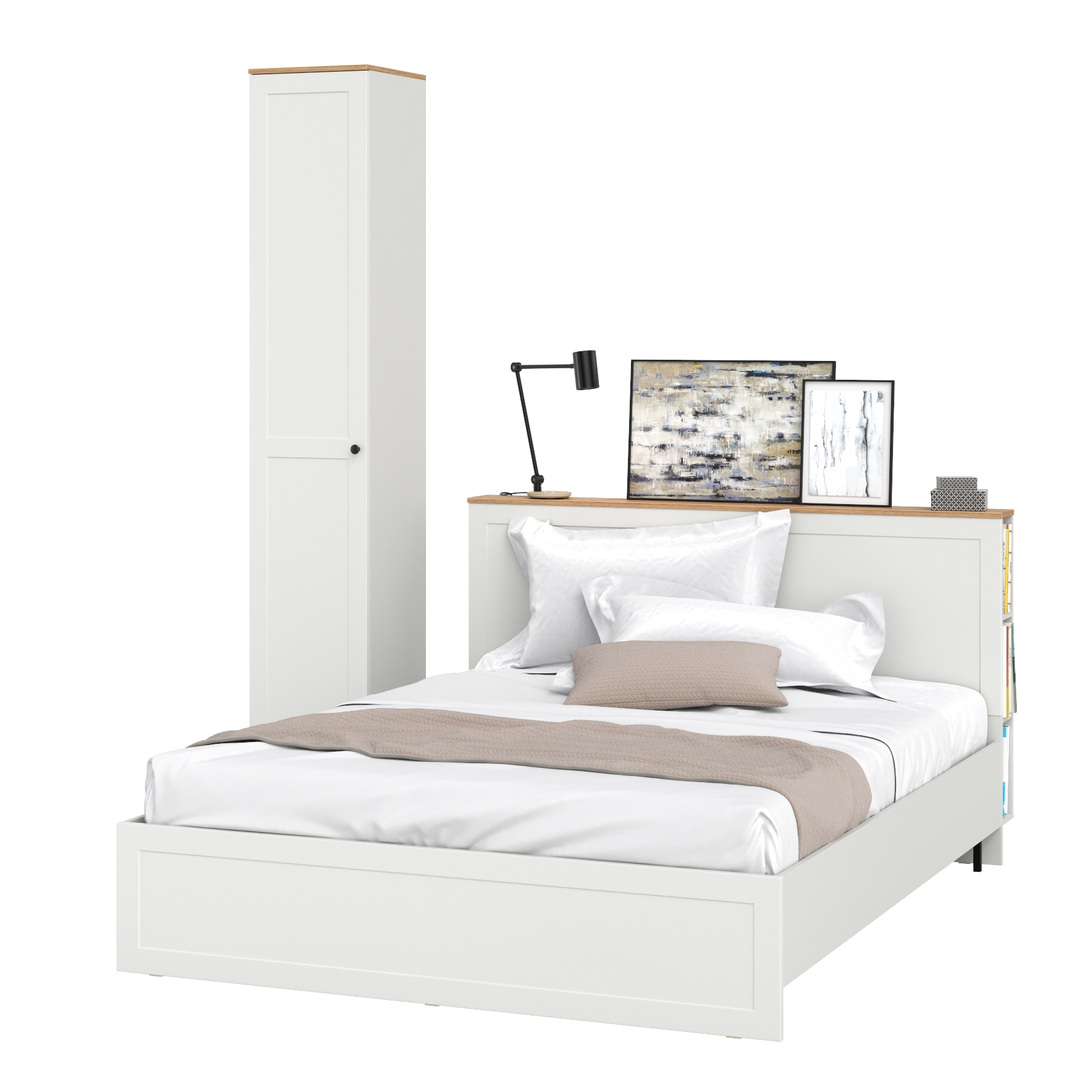 Двуспальная кровать Остин с ортопедическим основанием с платяным шкафом 13.224 и тумбой прикроватной