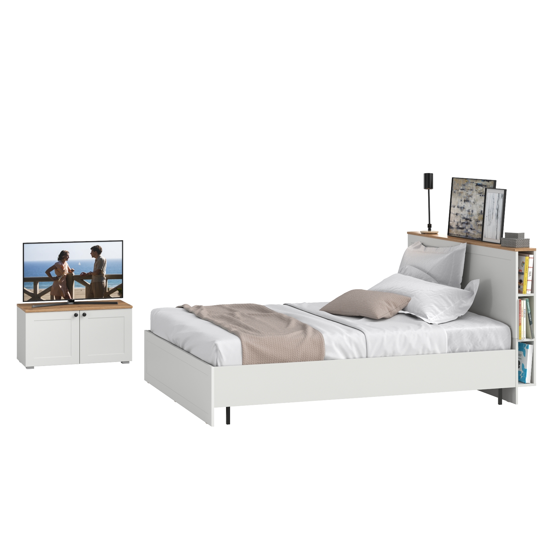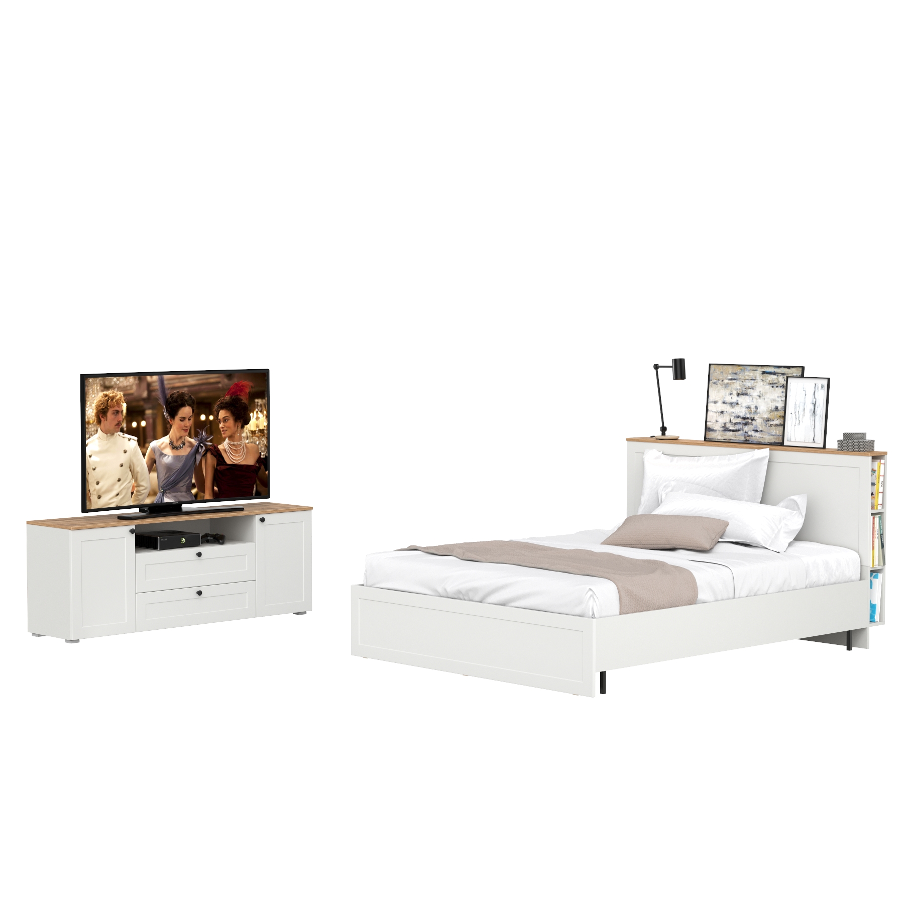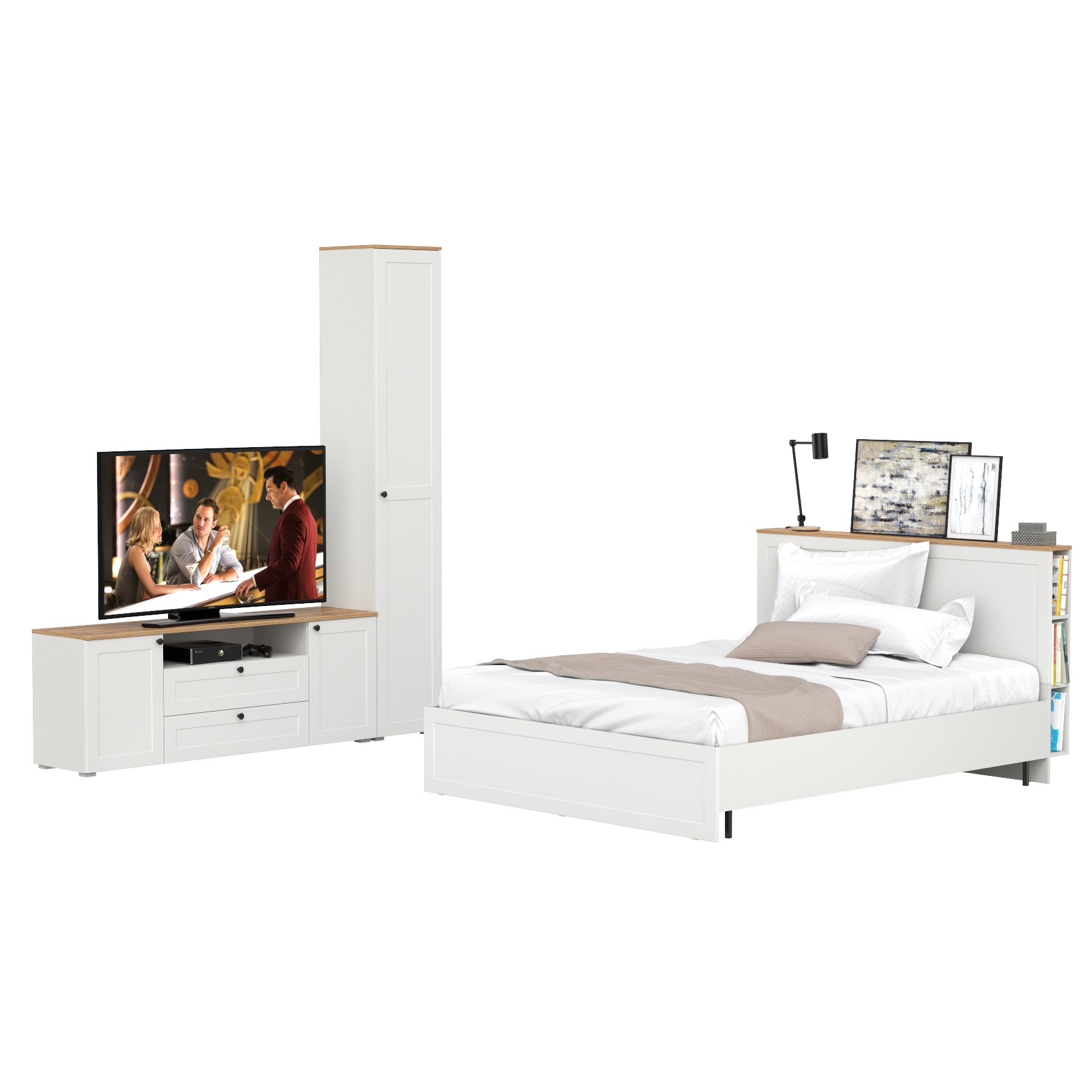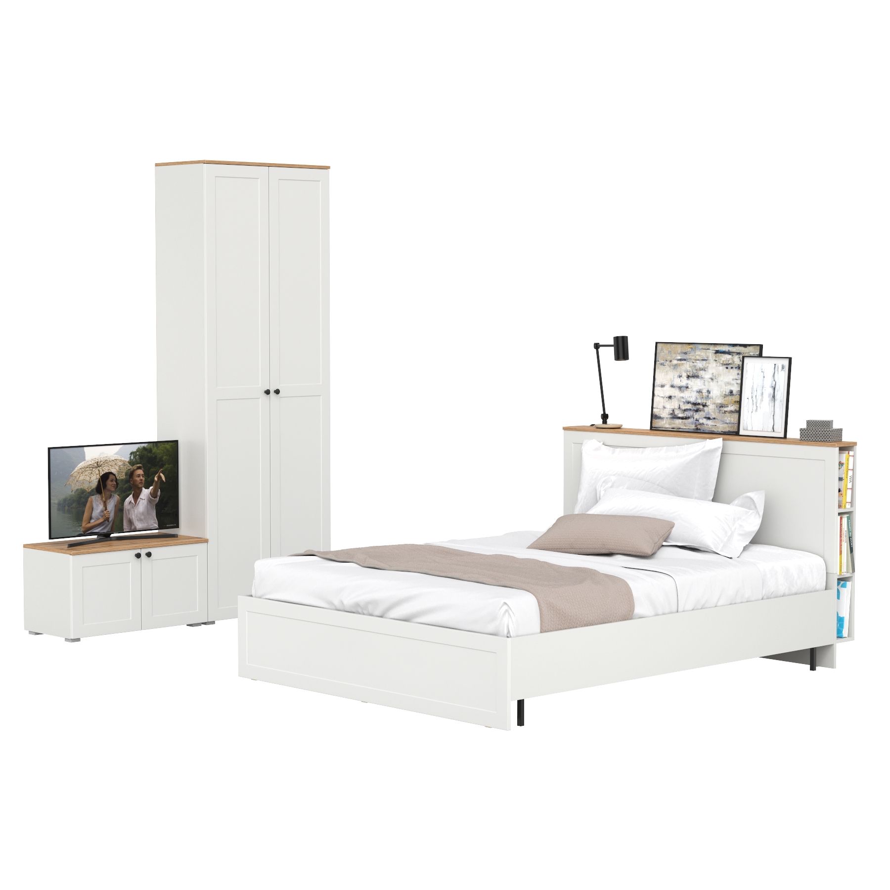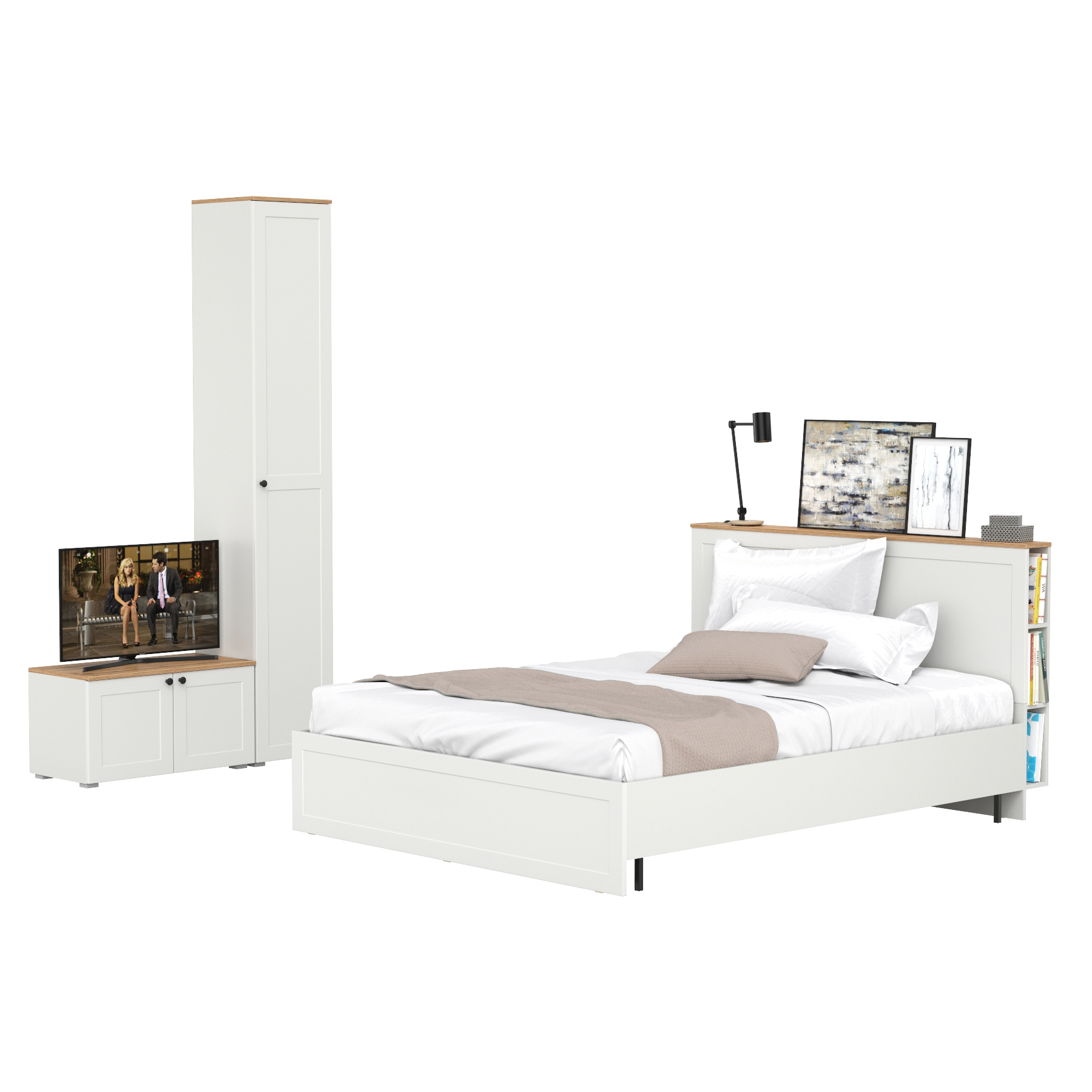 Двуспальная кровать Остин с ортопедическим основанием с платяным шкафом 13.224 и тумбой прикроватной