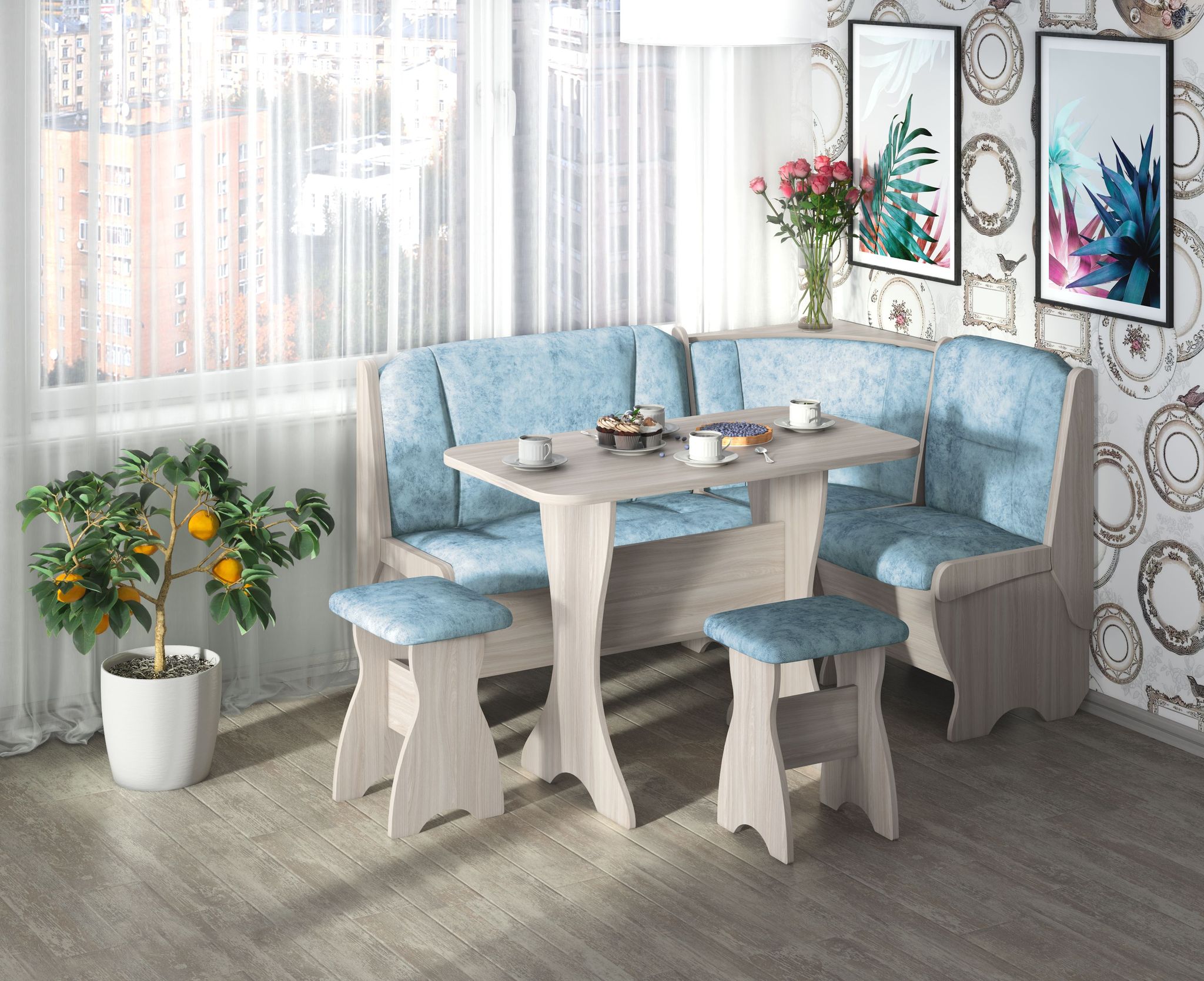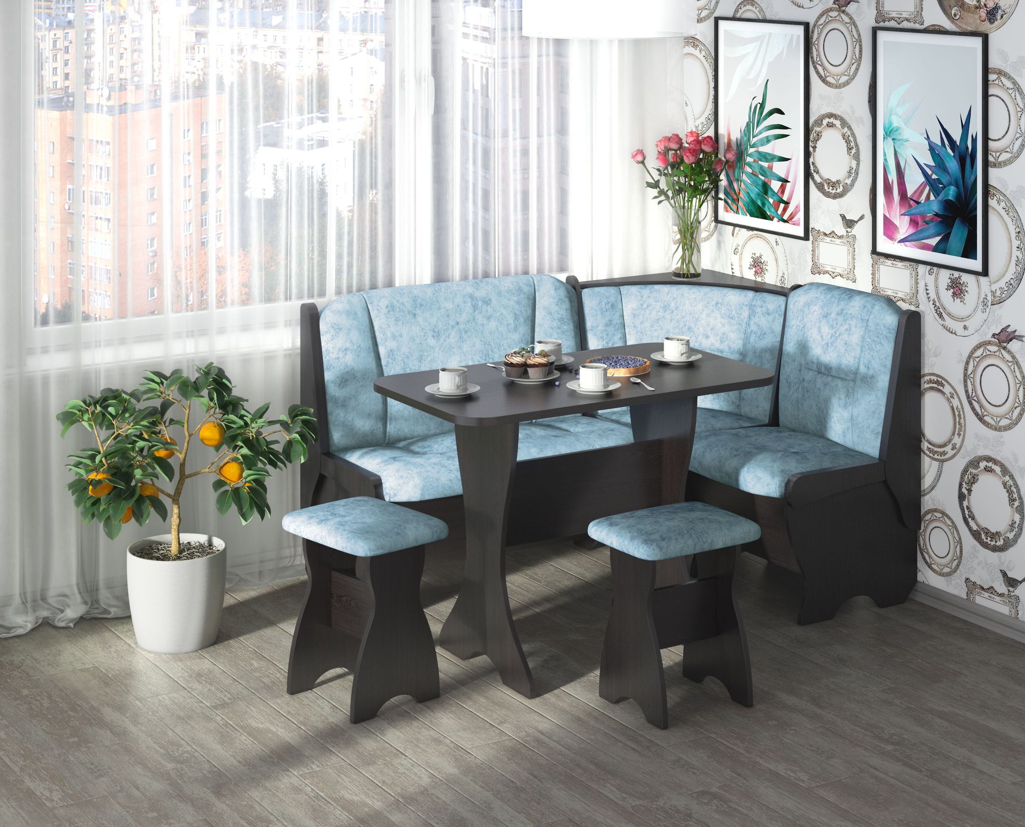 Кухонные уголки синего цвета