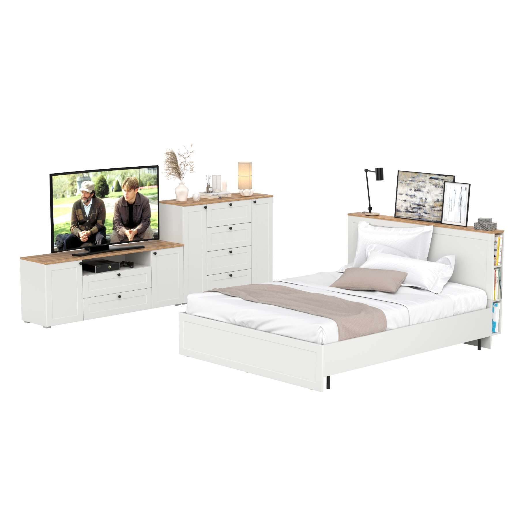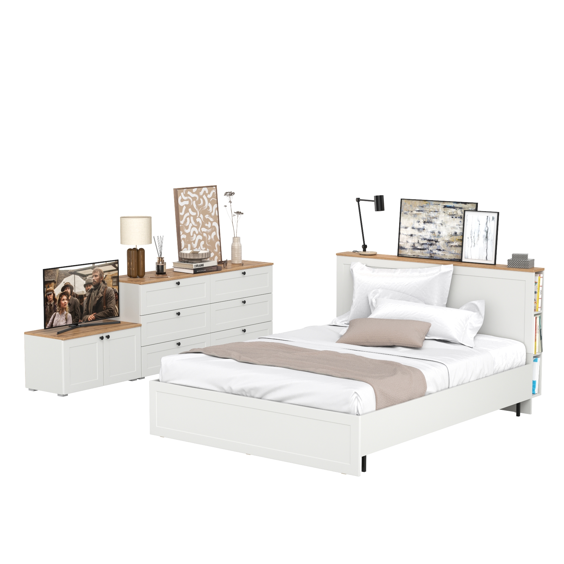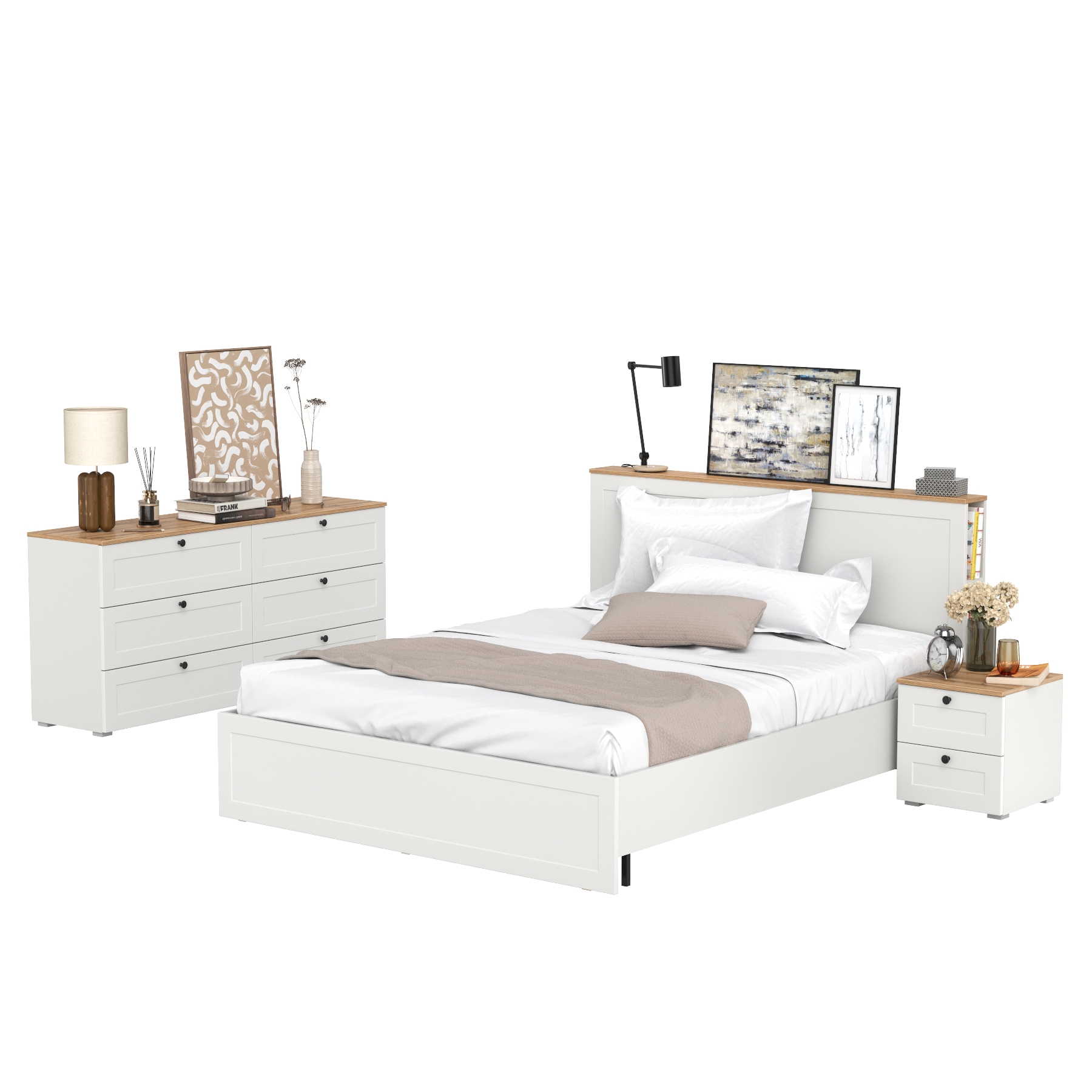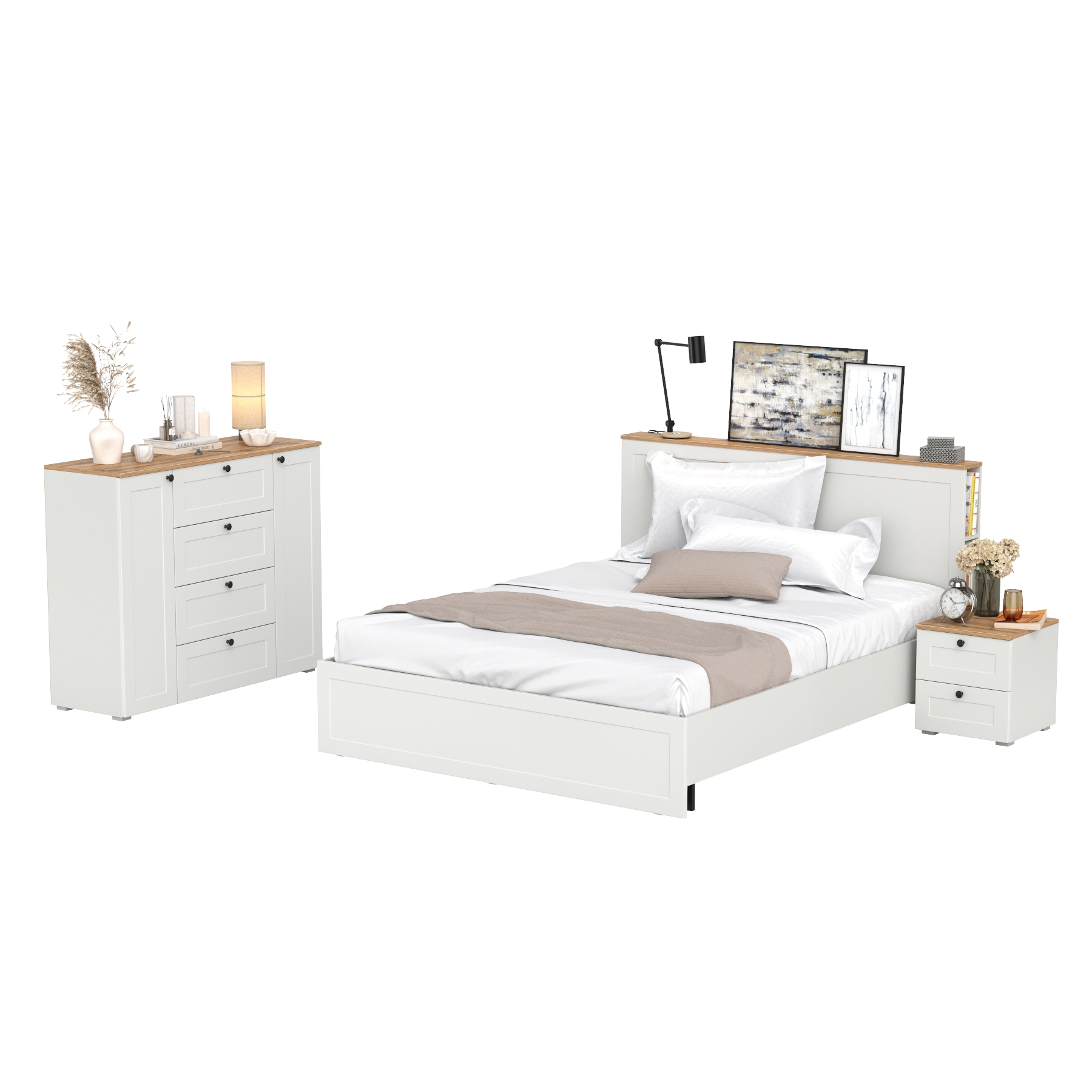 Гарнитур спальный Остин из комода 16.240 с кроватью с ортопедическим основанием и тумбы прикроватной