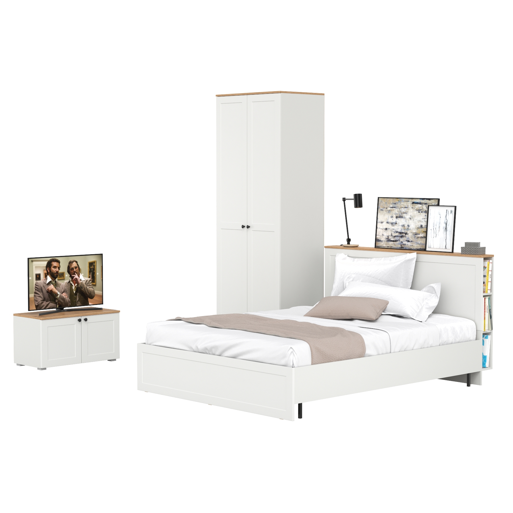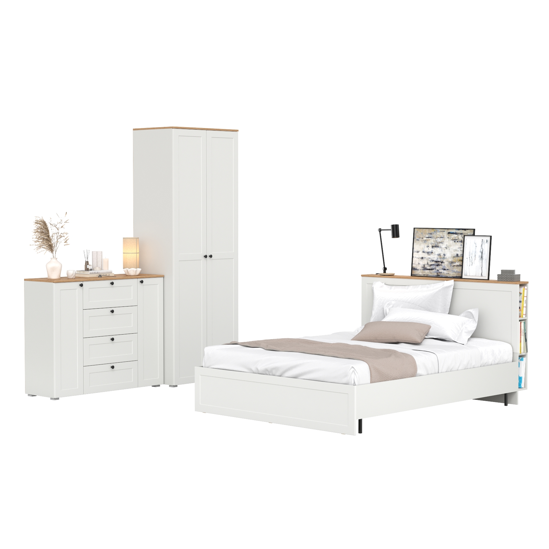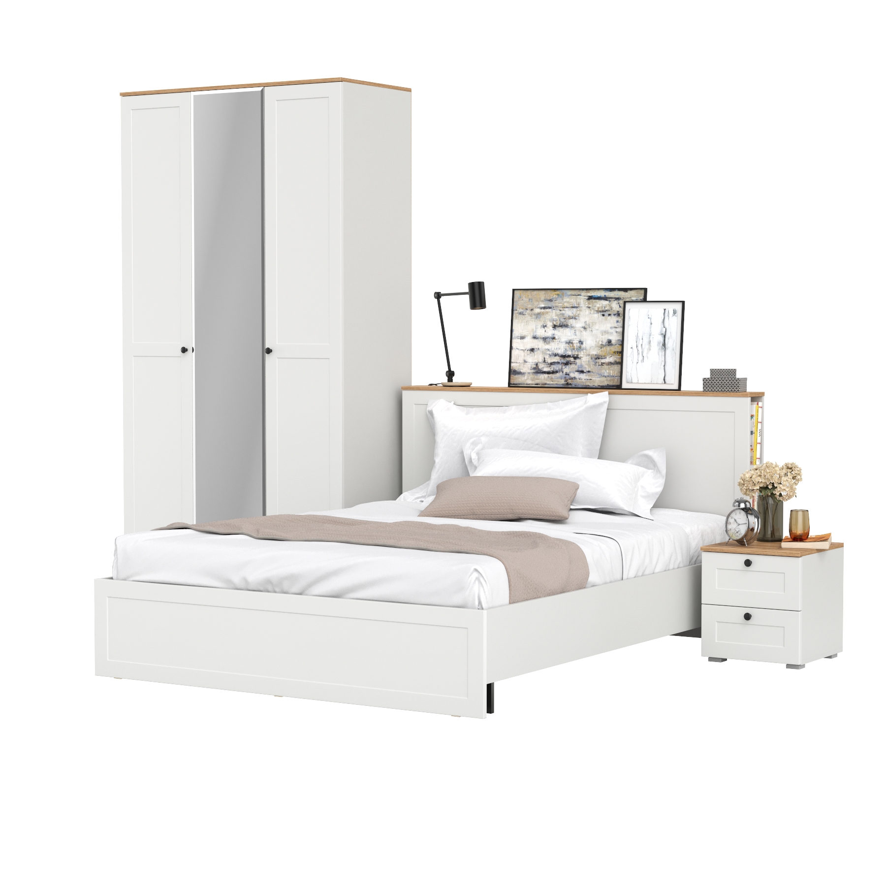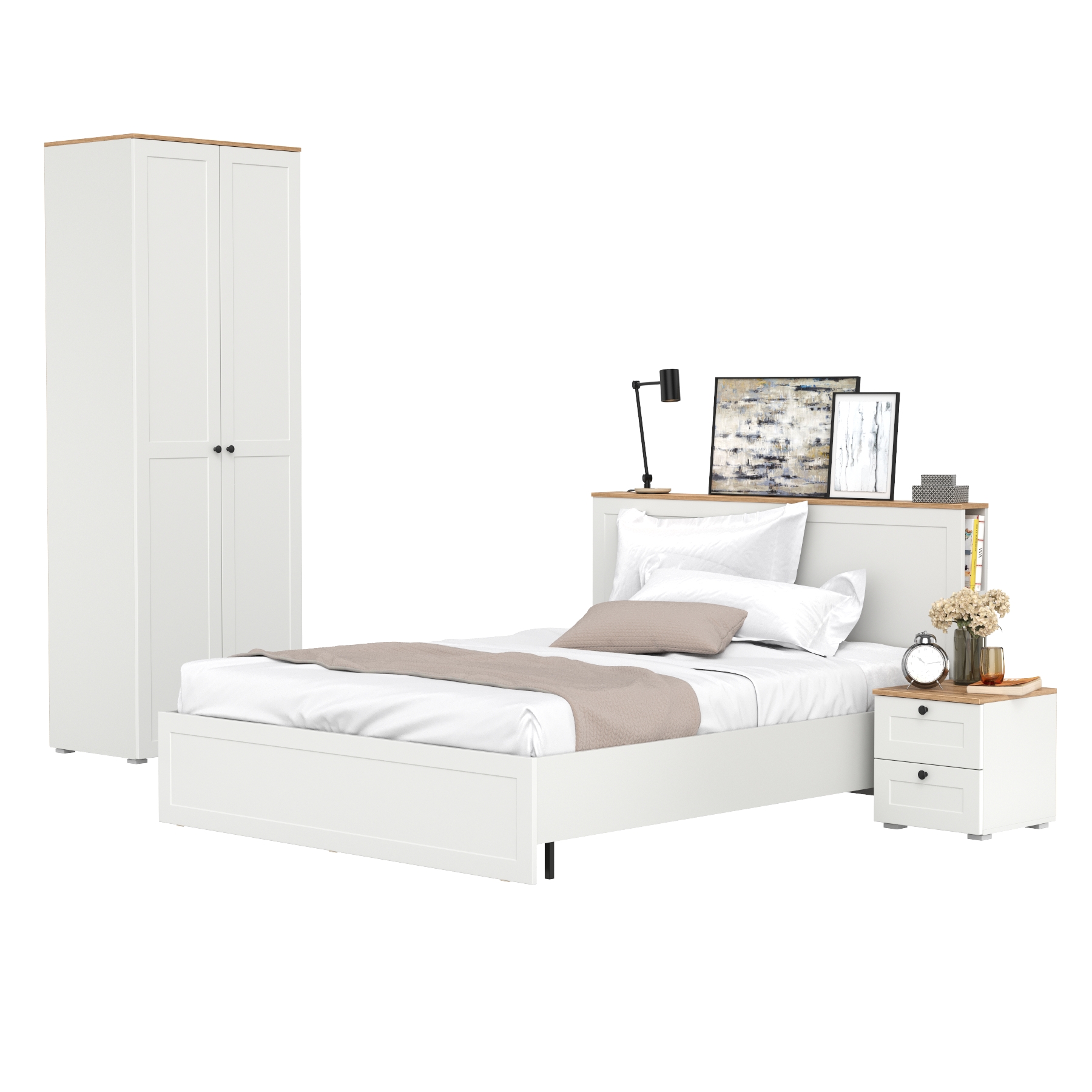 Двуспальная кровать Остин с ортопедическим основанием с платяным шкафом 13.224 и тумбой прикроватной