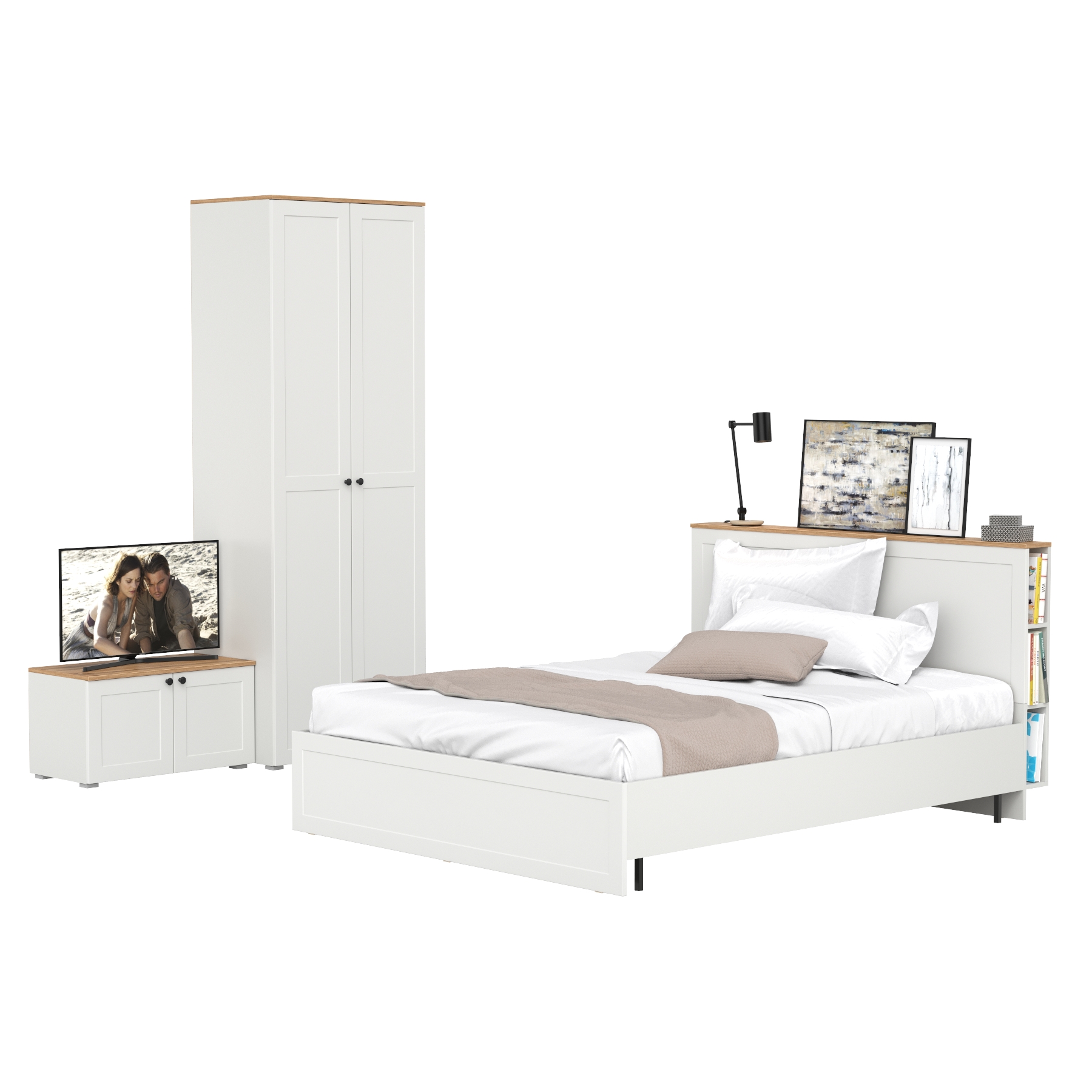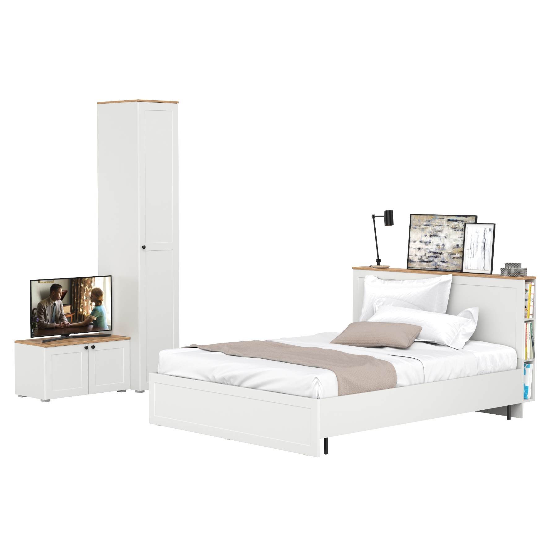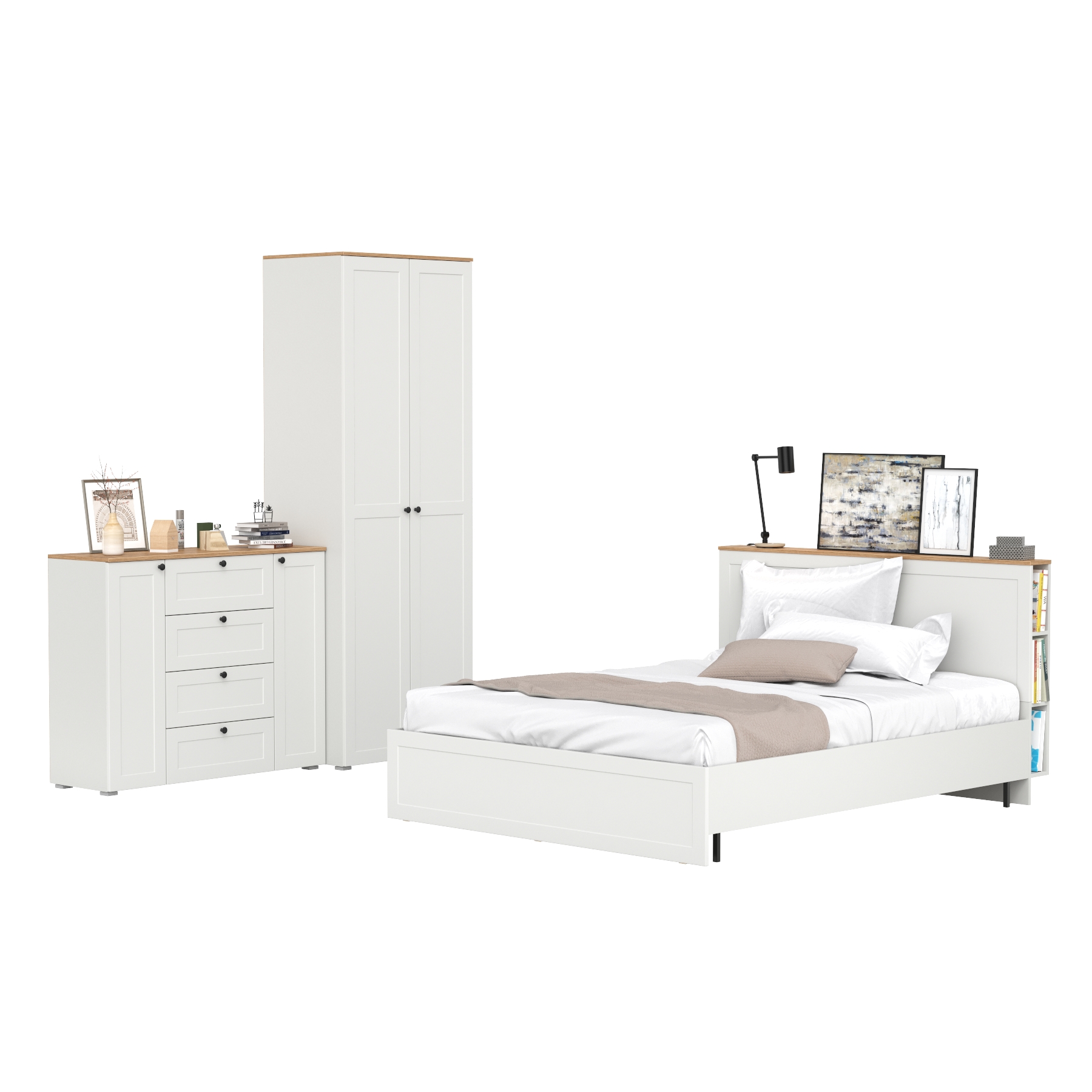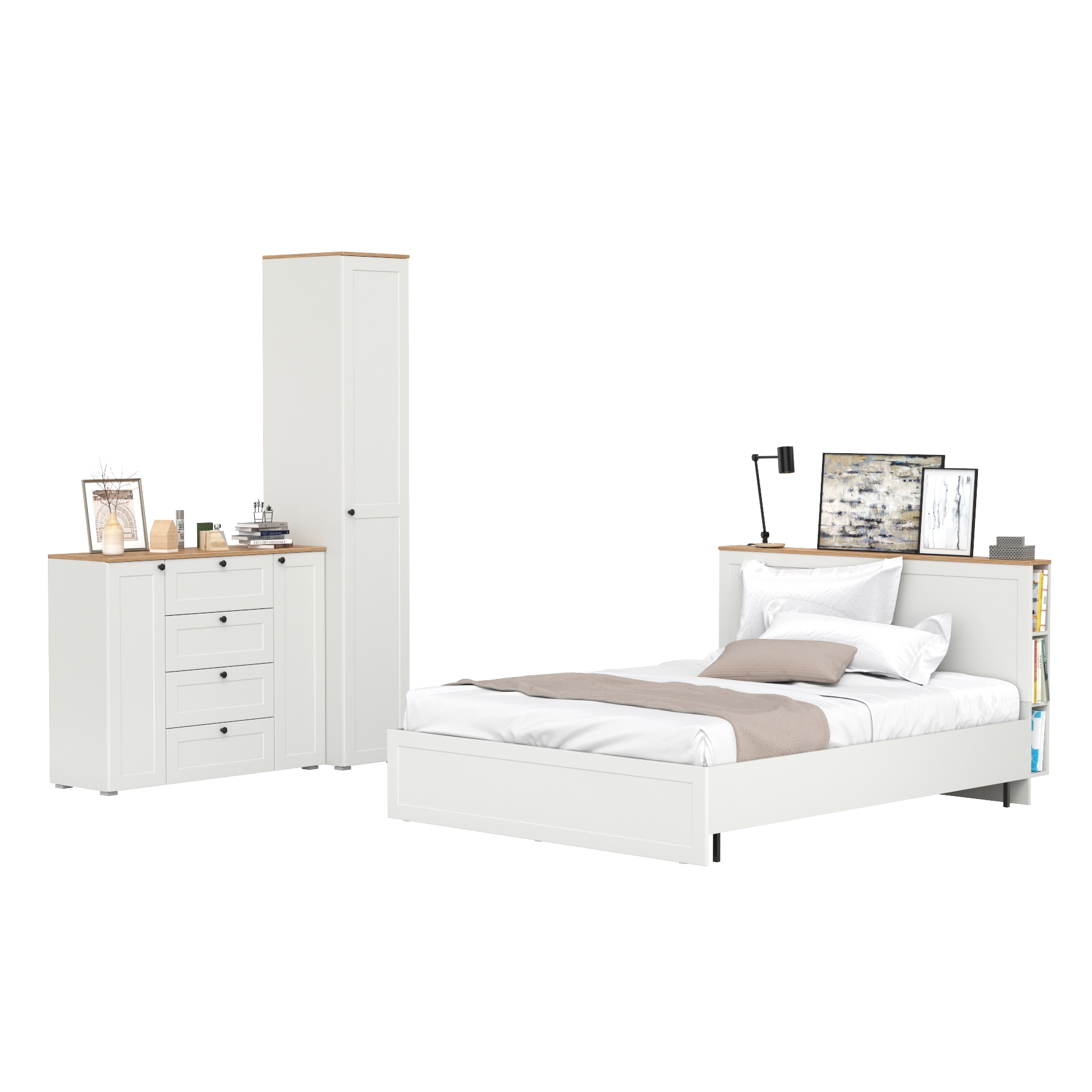 Двуспальная кровать Остин с ортопедическим основанием с платяным шкафом 13.224 и тумбой прикроватной