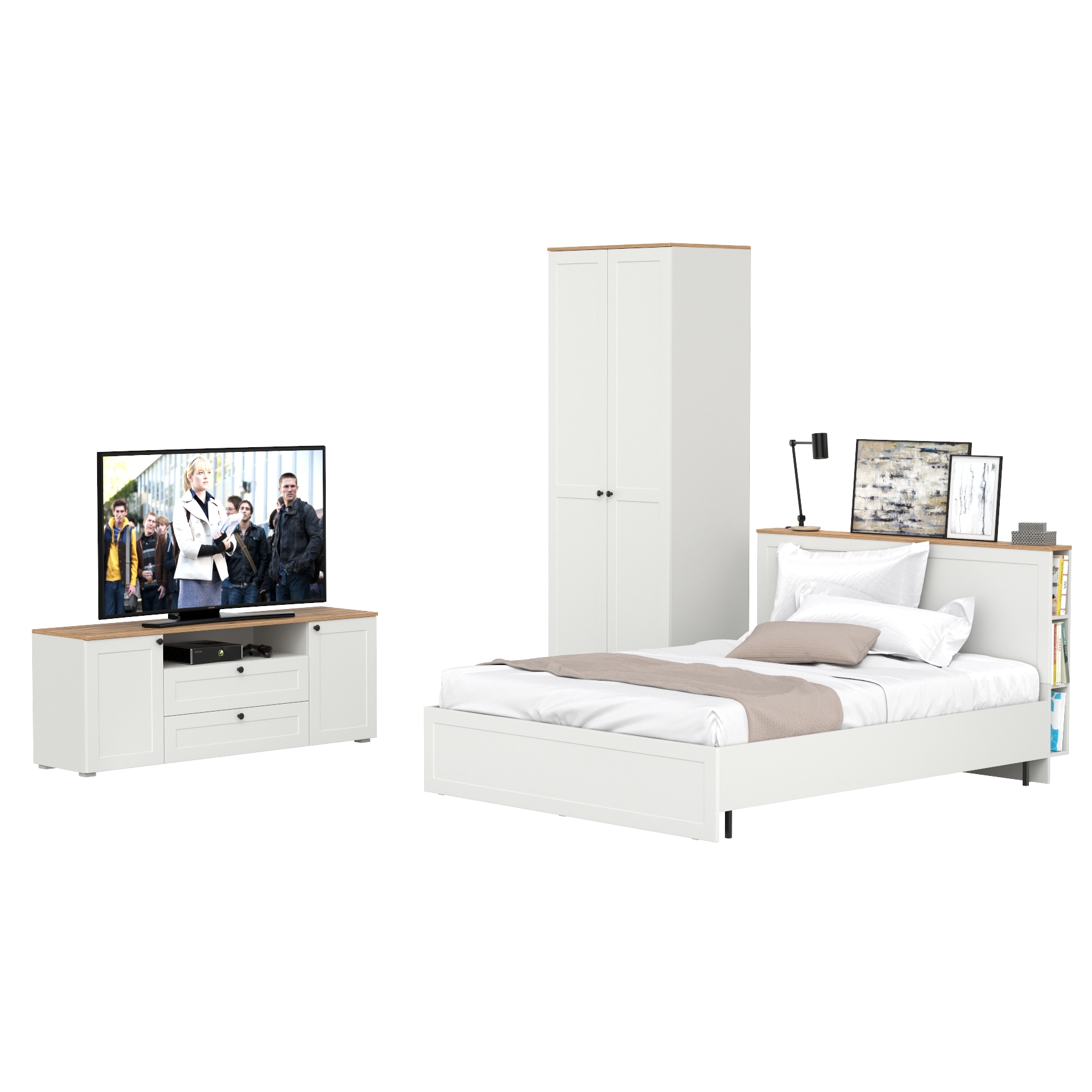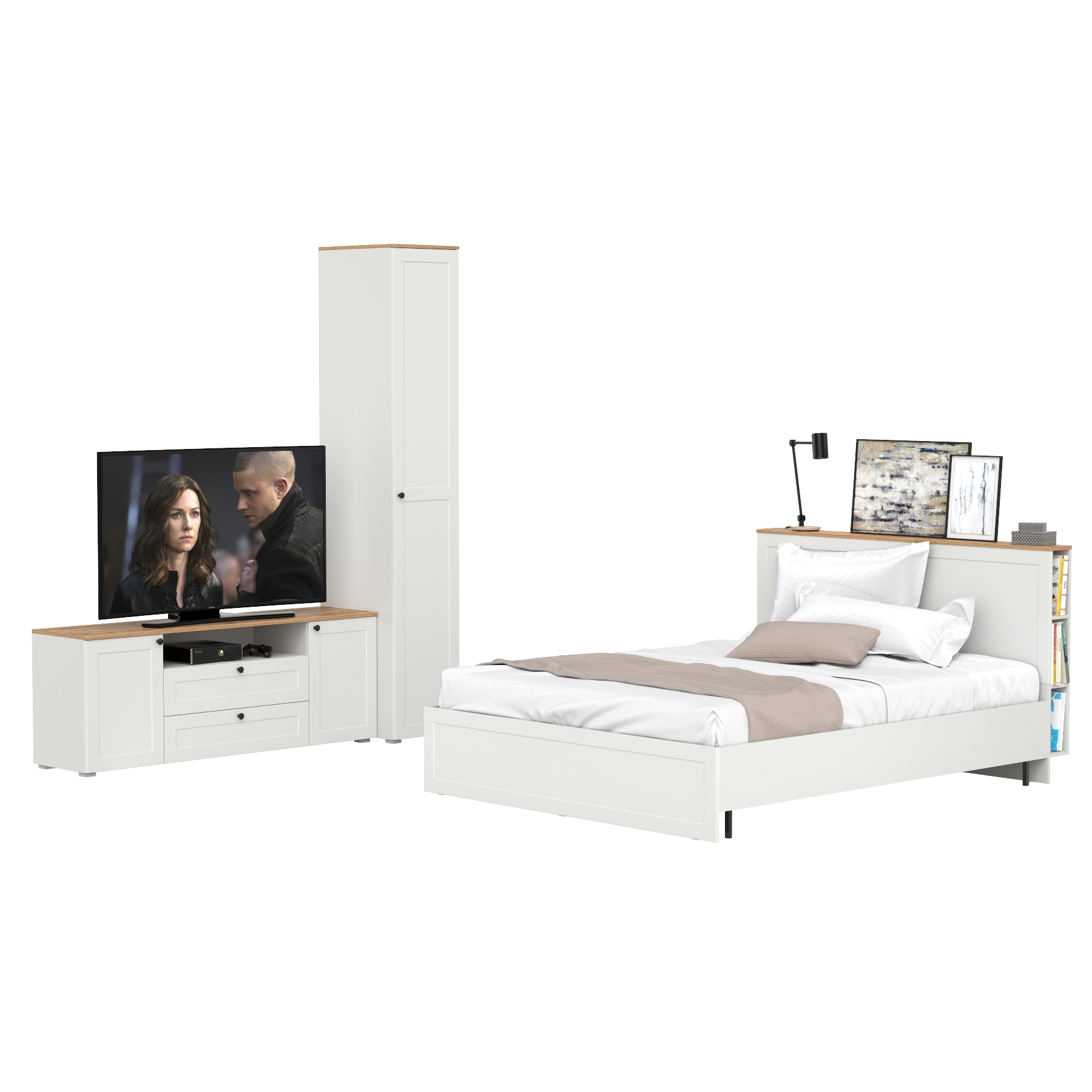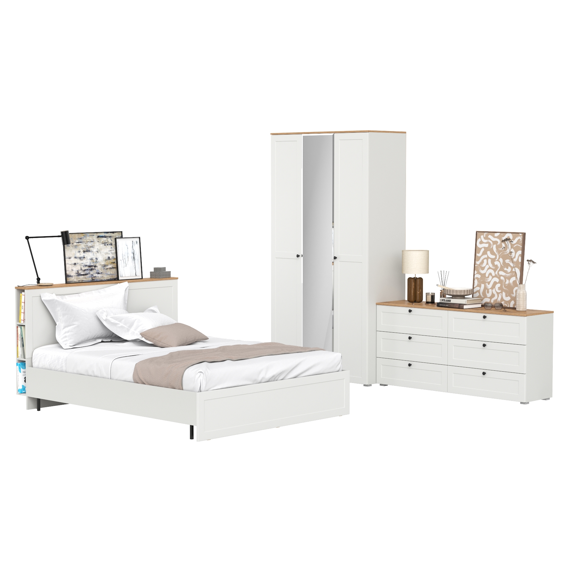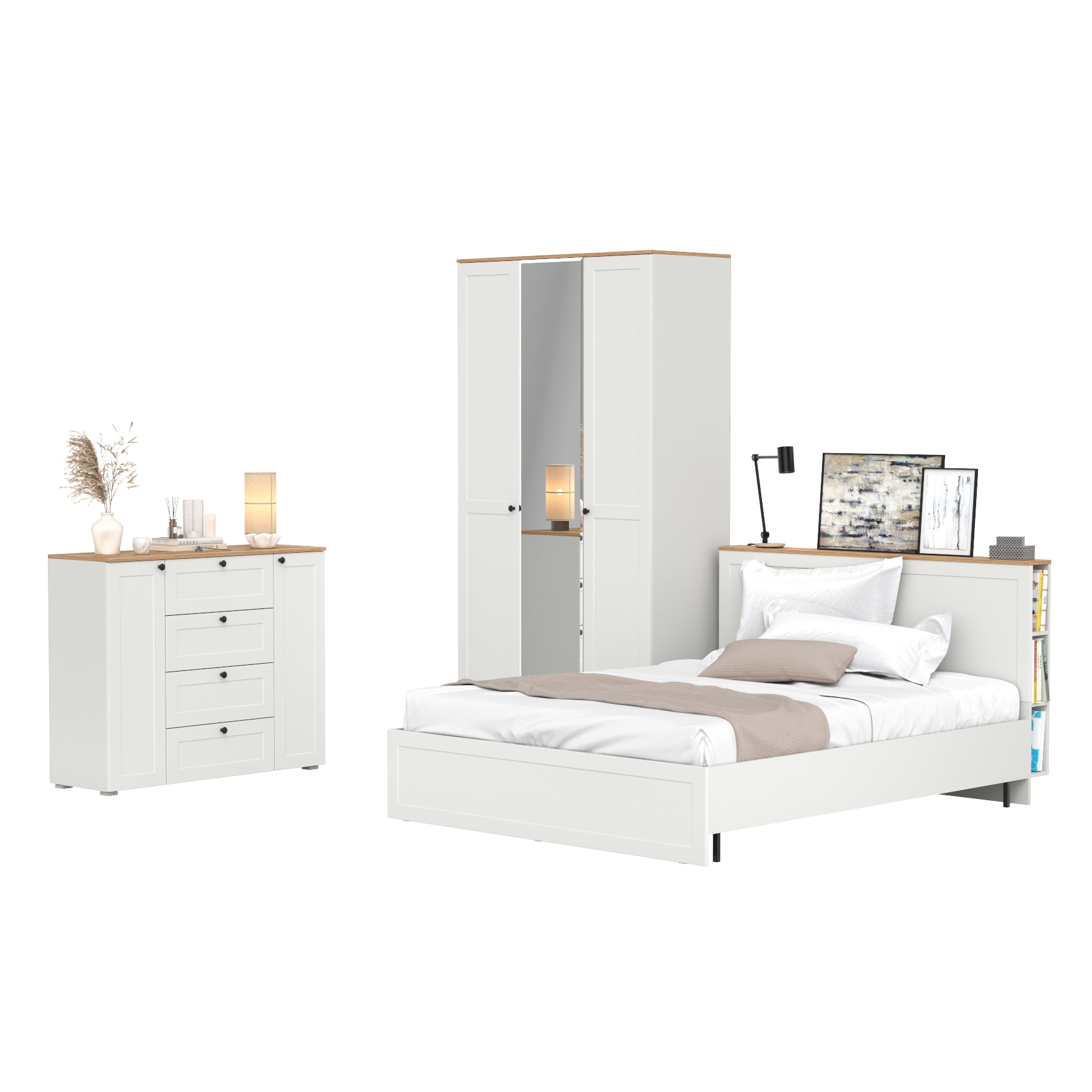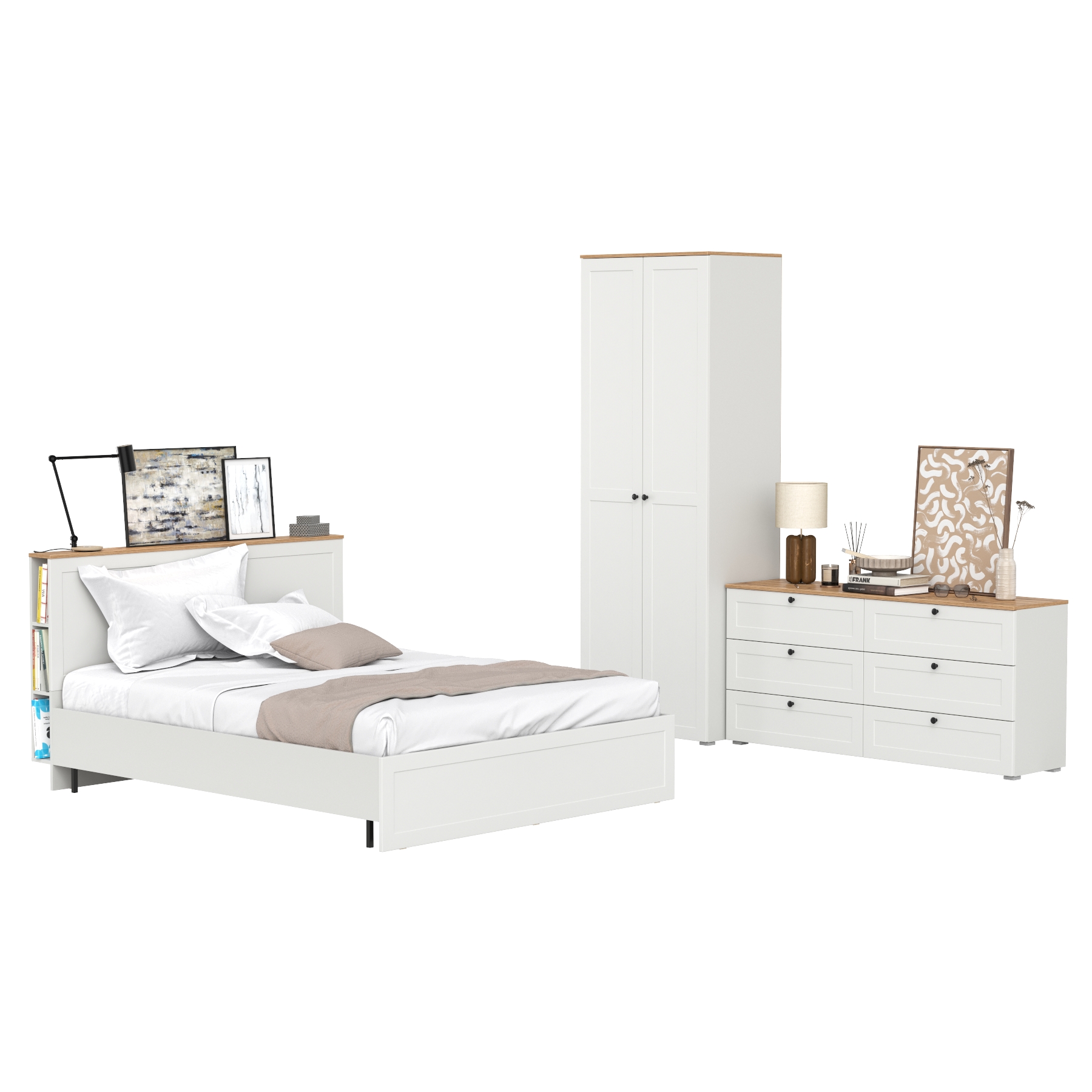 Двуспальная кровать Остин с ортопедическим основанием с платяным шкафом 13.224 и тумбой прикроватной