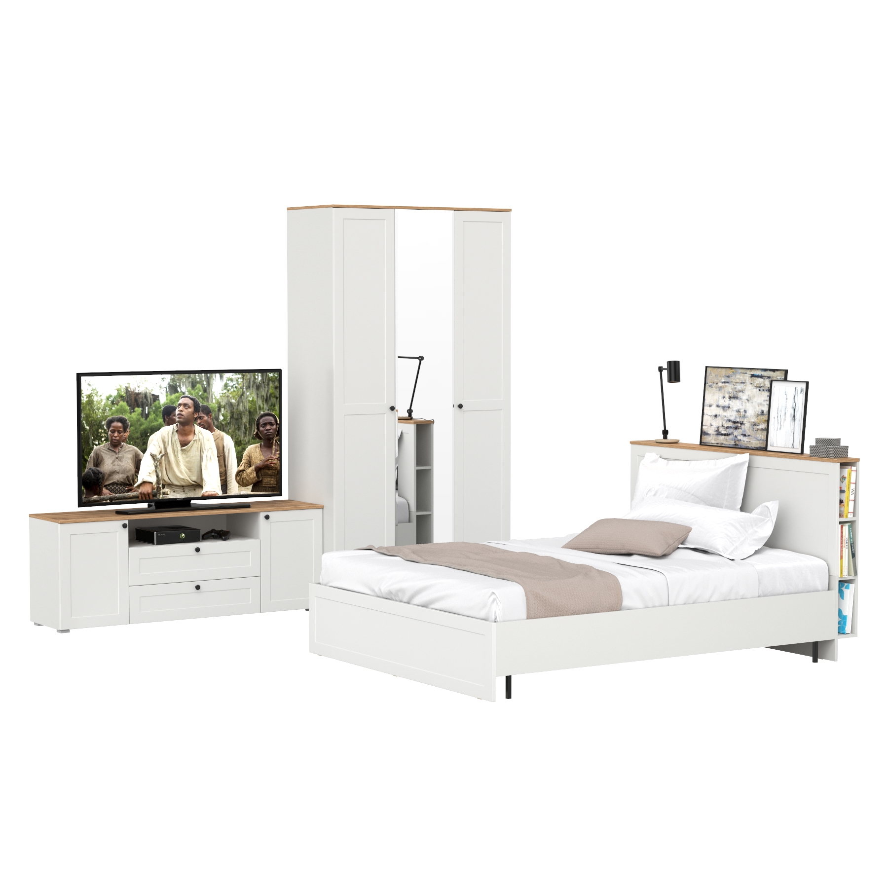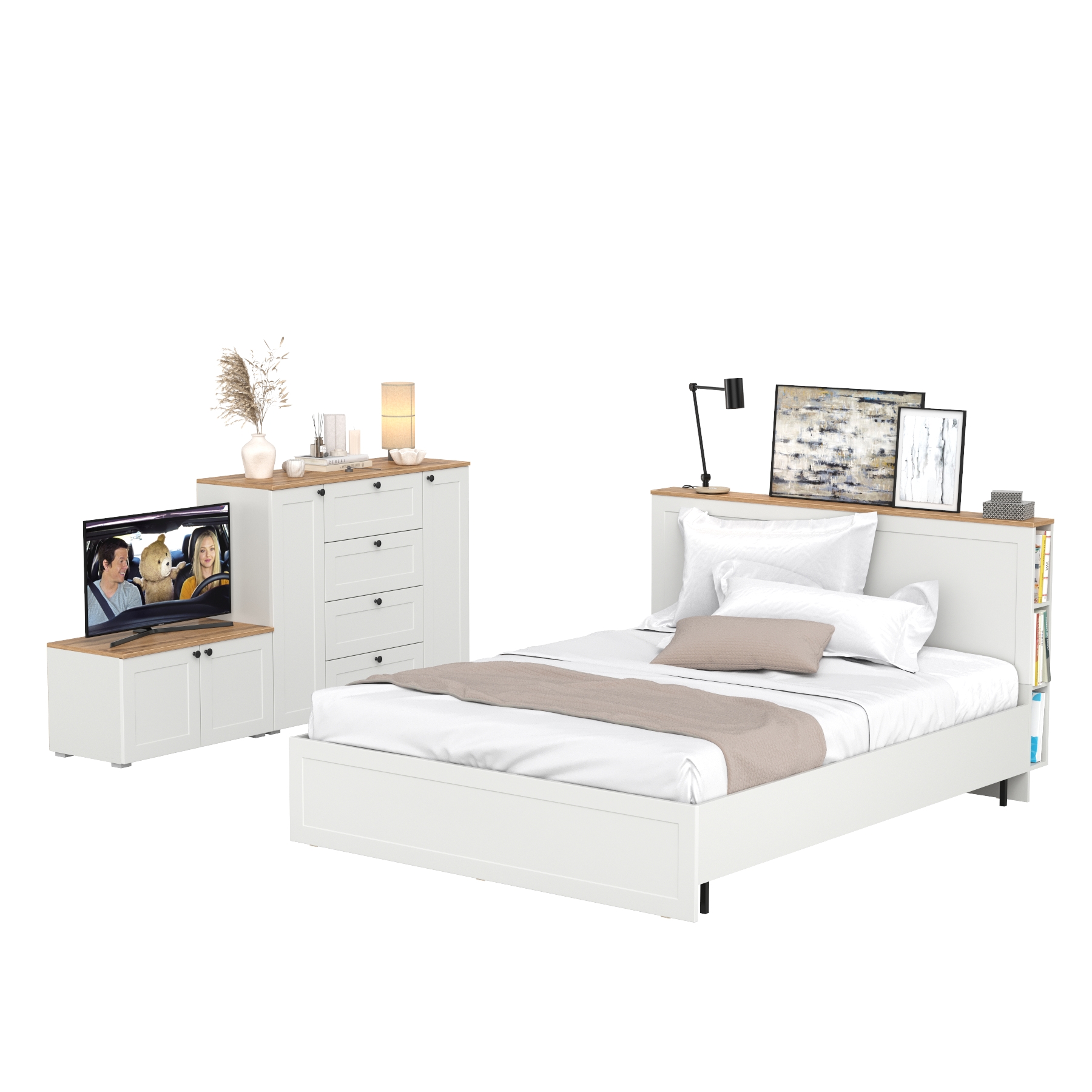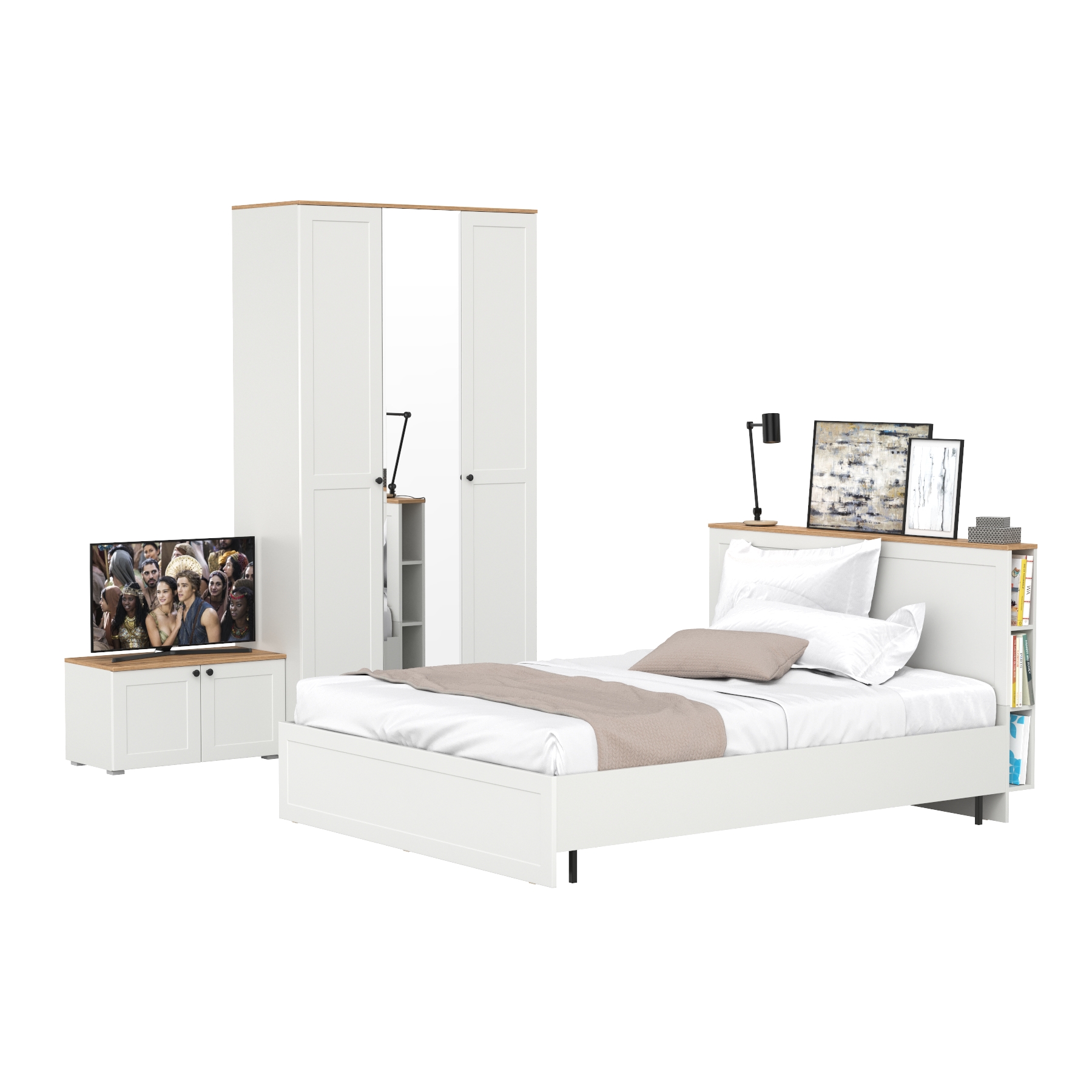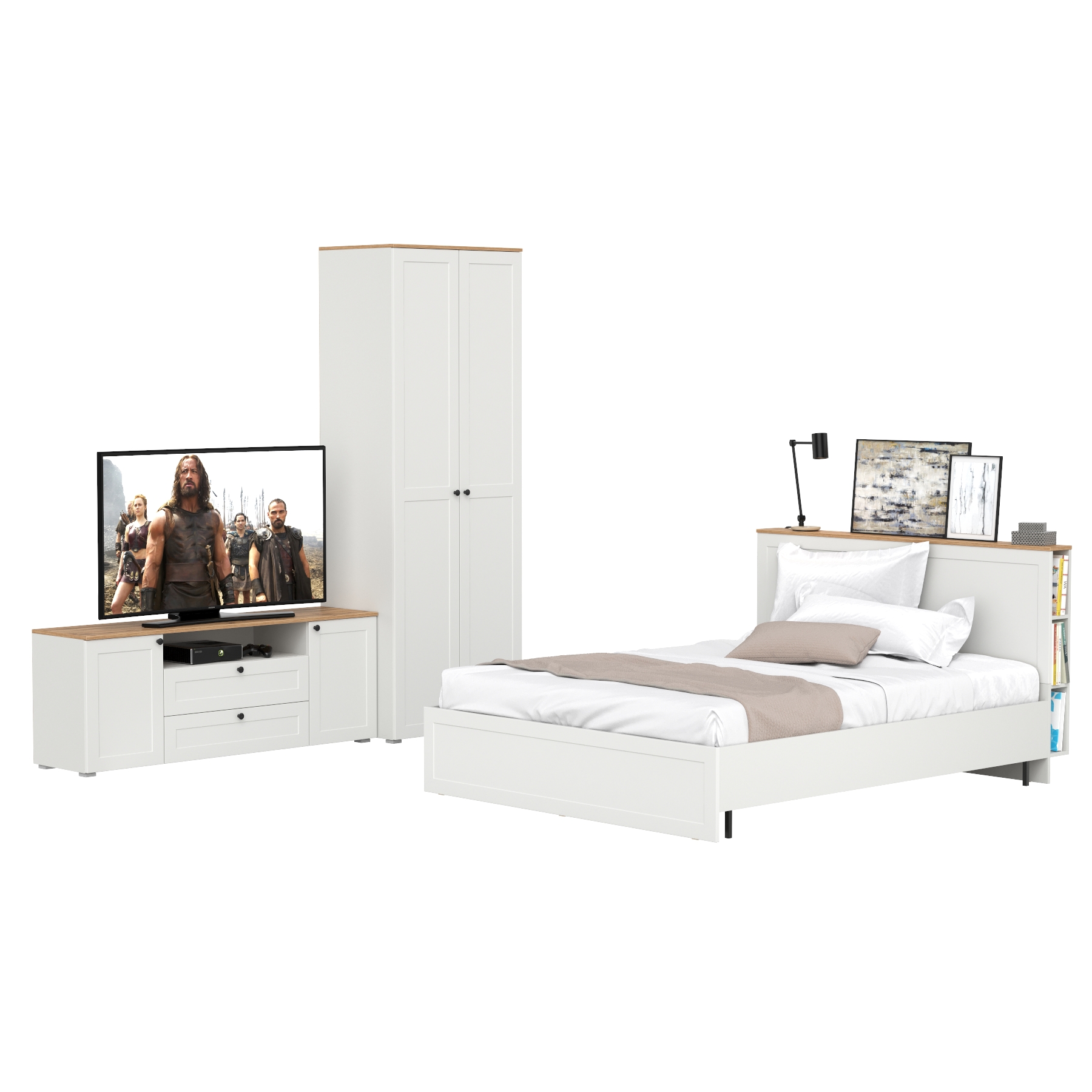 Двуспальная кровать Остин с ортопедическим основанием с платяным шкафом 13.224 и тумбой прикроватной