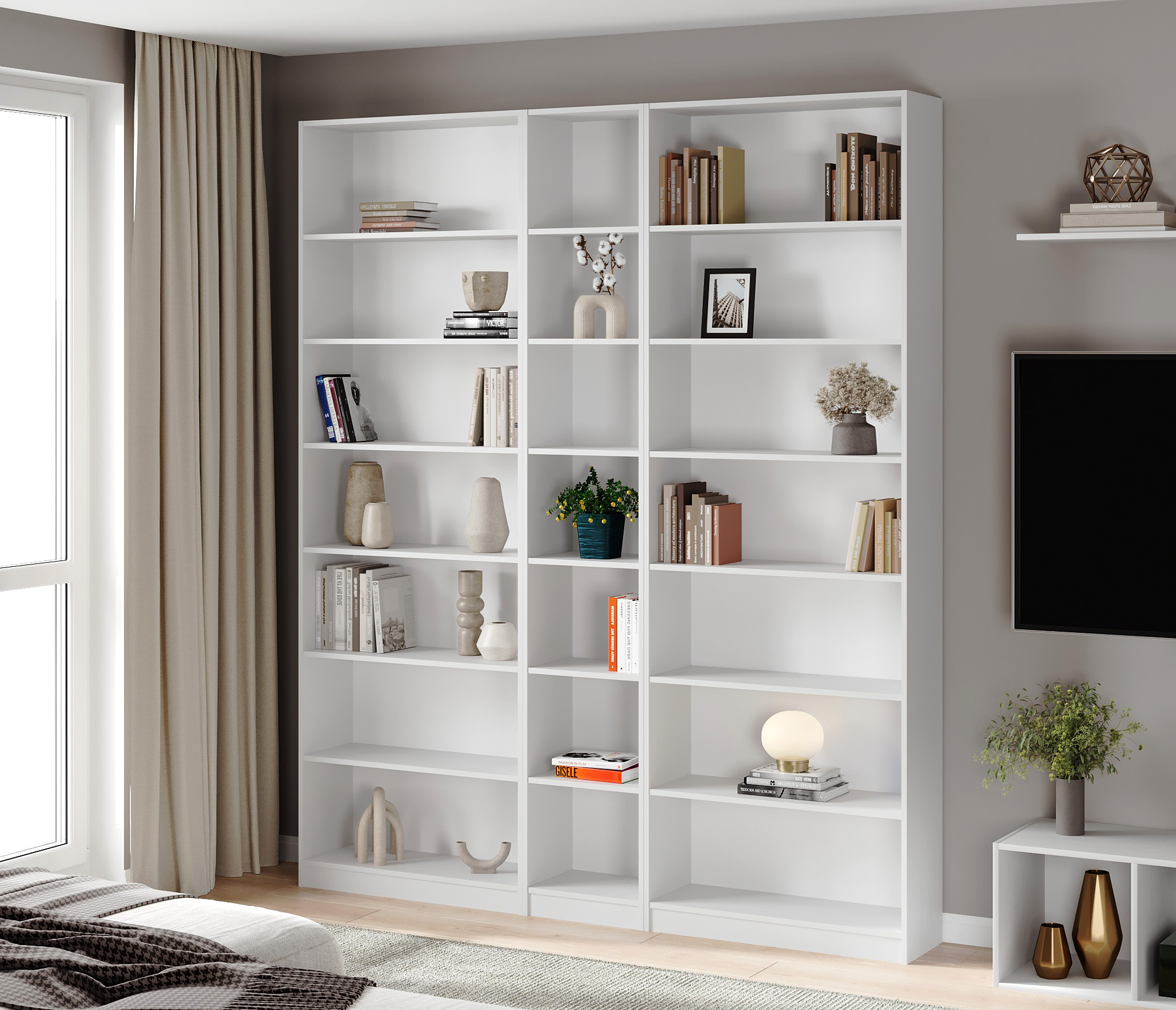 Страница №2 - Деревянные стеллажи белого цвета в гостиную