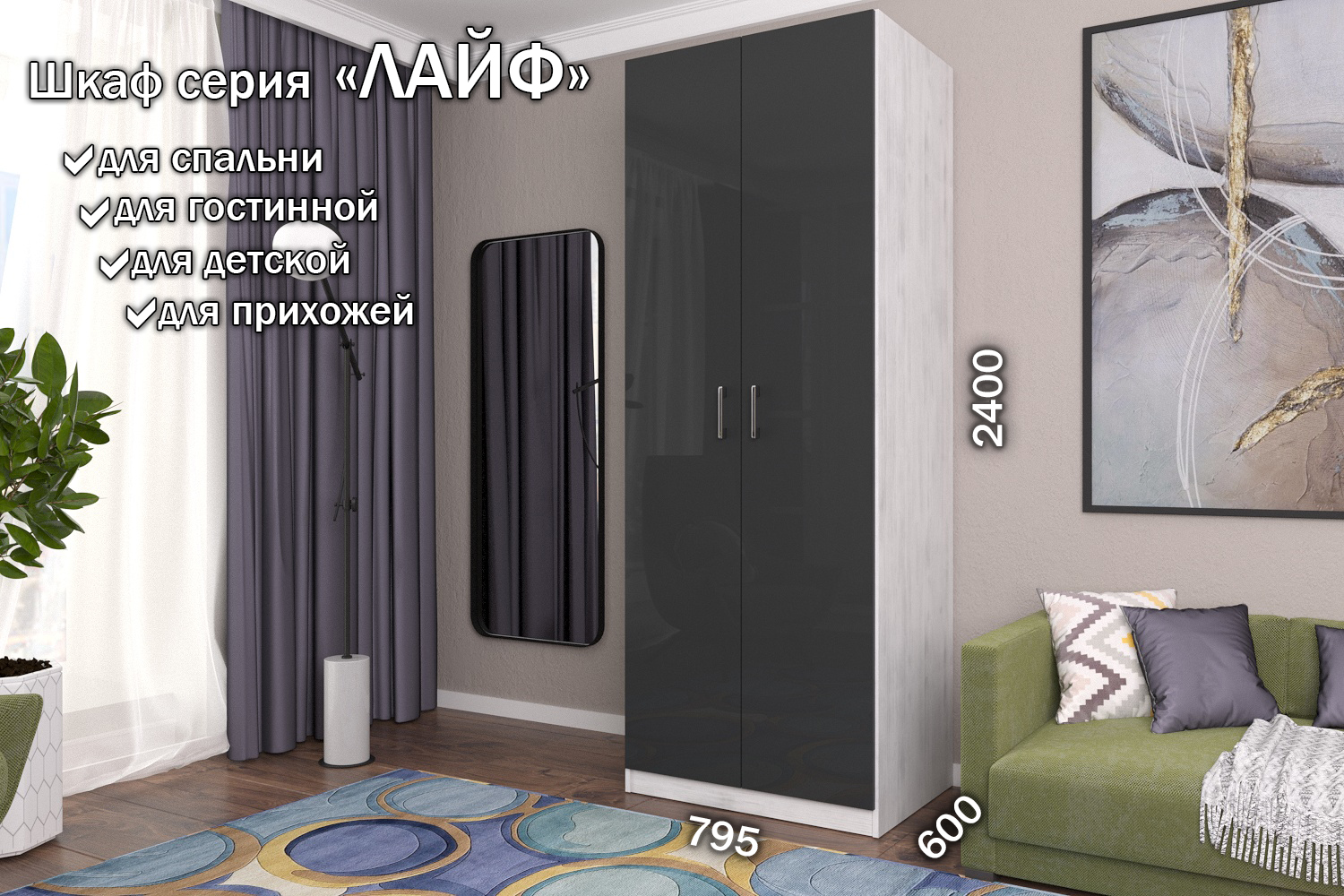 Ширина 80 x Высота 240 x Глубина 60