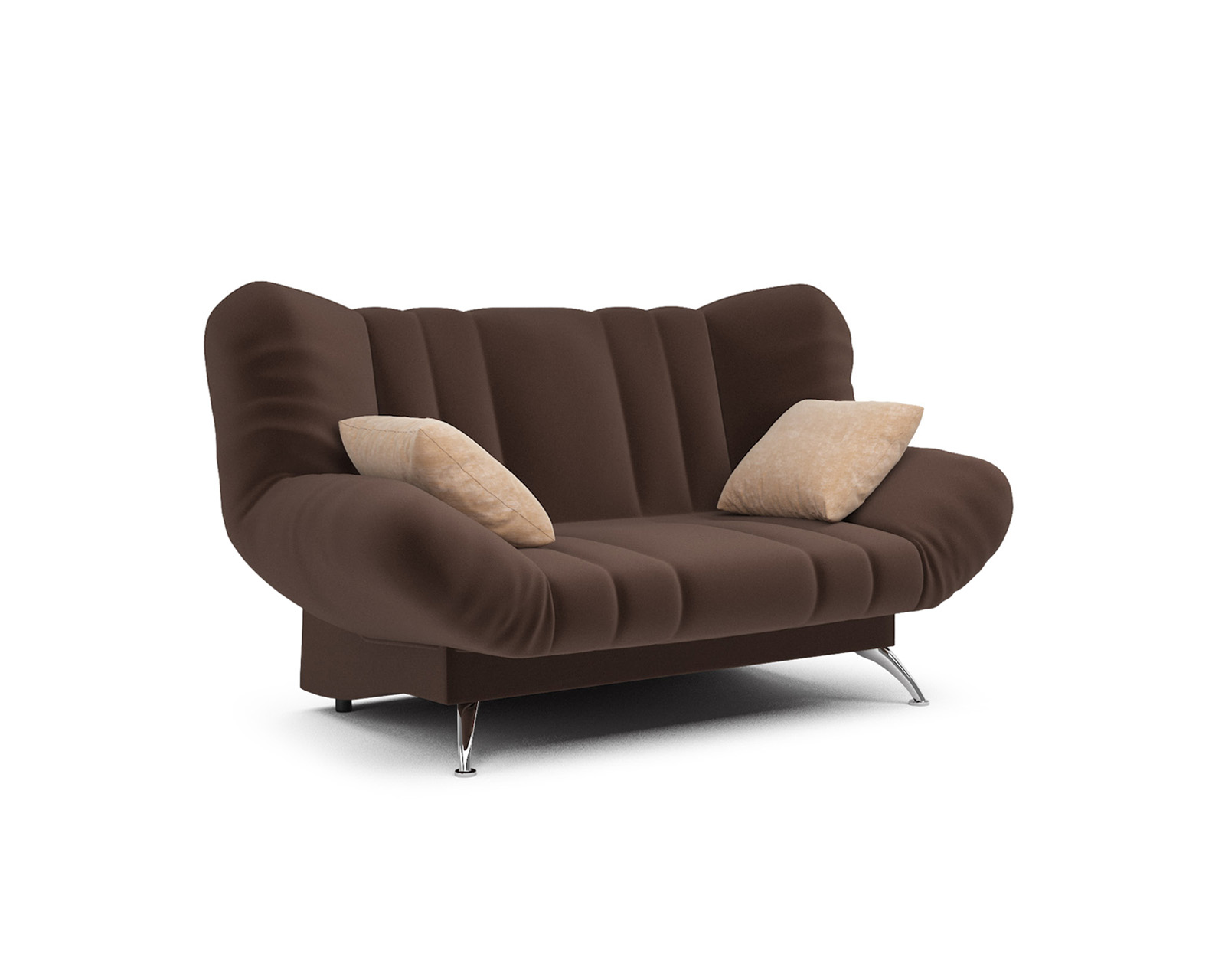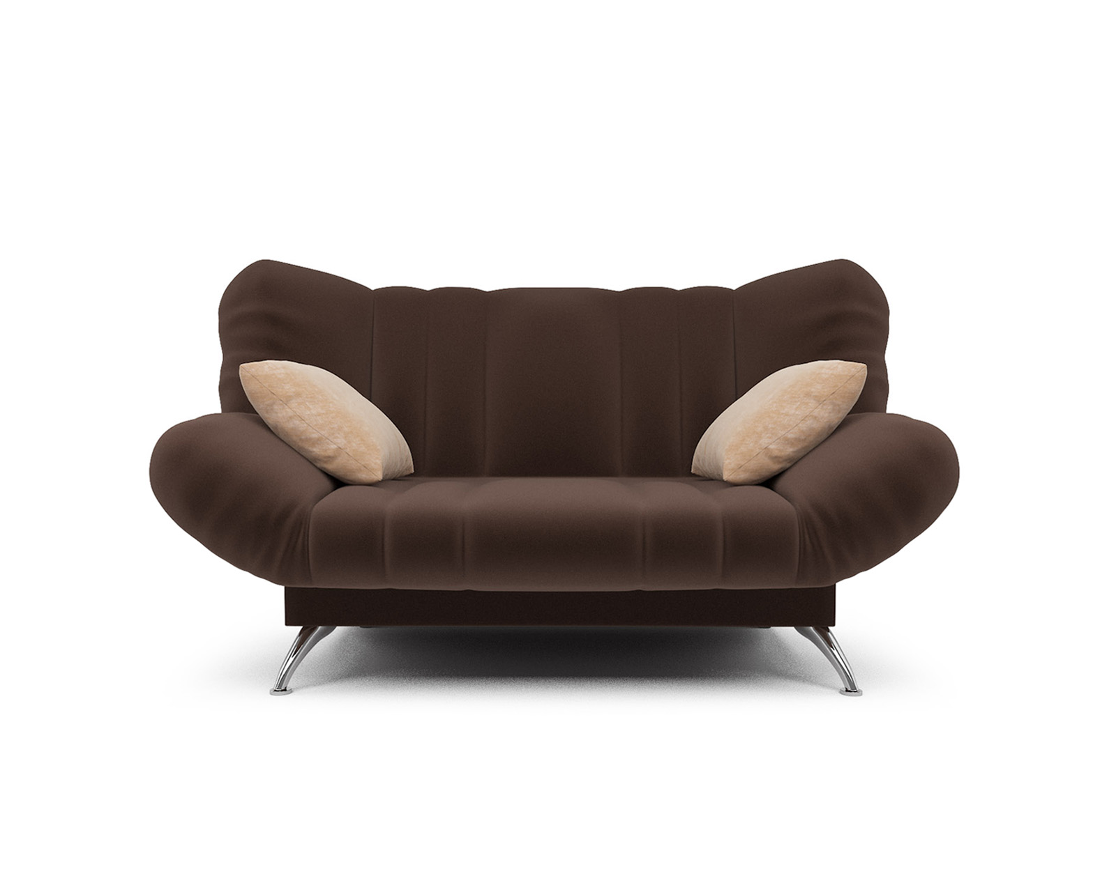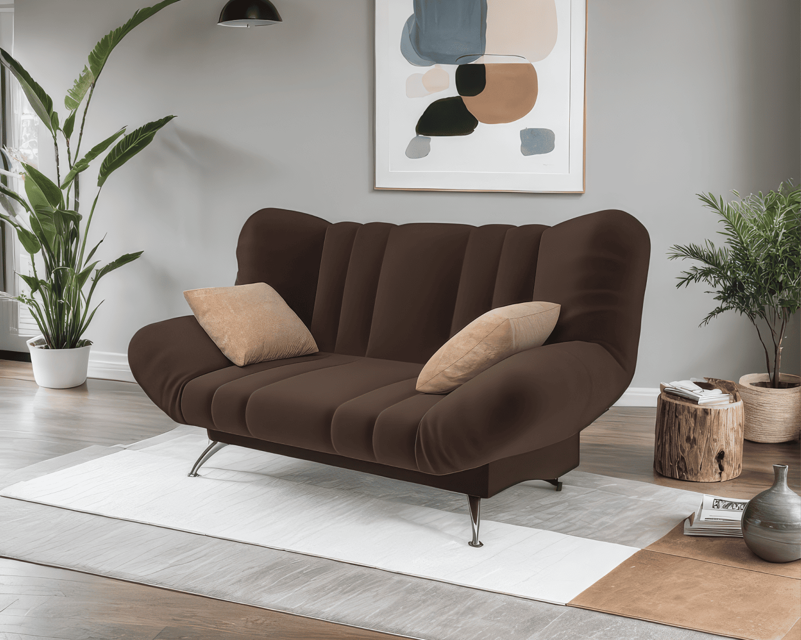 Высокие металлические ножки придают дивану современный и стильный вид, что делает его отличным акцентом в интерьере. Две декоративные подушки добавляют дополнительный комфорт и приятные акценты.