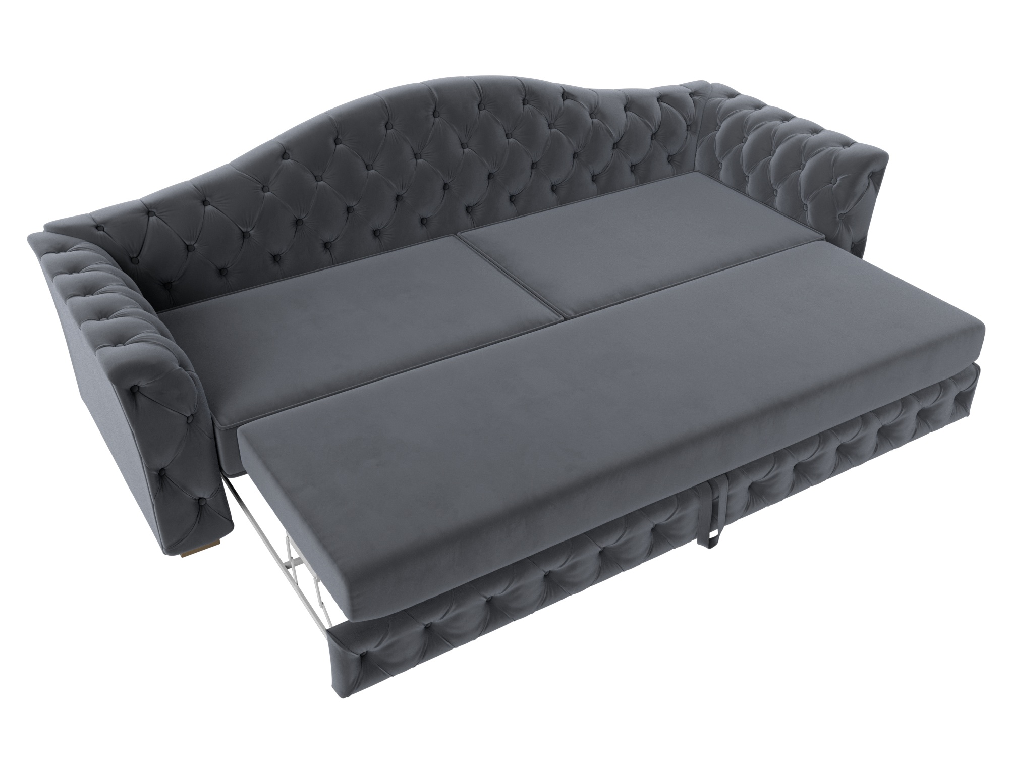 При стандартных габаритах 250х103х97 см подойдет для большой семьи или дружной компании, легко раскладывается, обеспечивая спальное место 140х198 см.