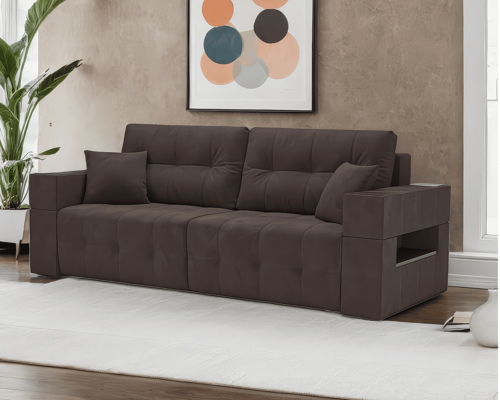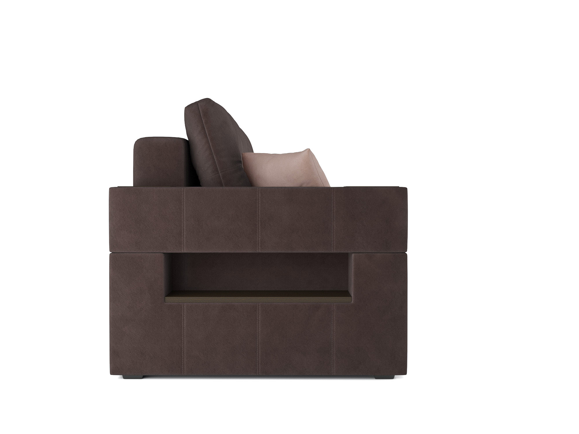 Встроенные в подлокотники ниши удобно использовать как место для расположения книг или небольших элементов декора. Глубокая посадка фиксируется приспинными подушками, поддерживающими правильное положение спины и шеи в положении сидя.