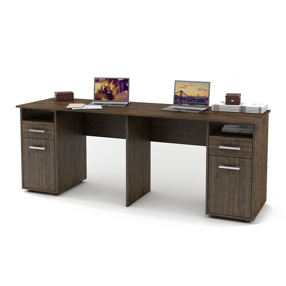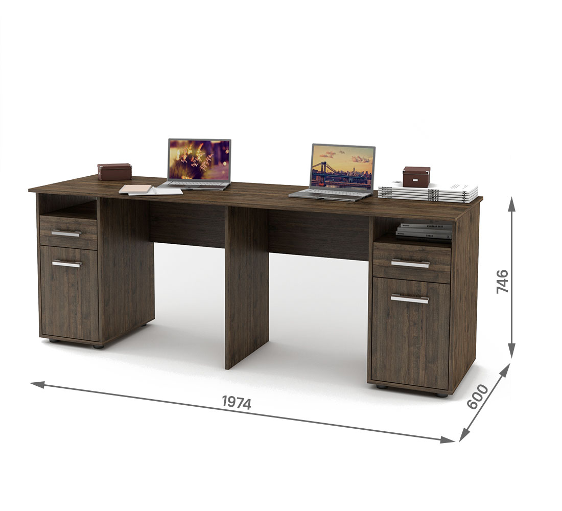 Стол обеспечит рабочими местами сразу двух человек и будет отличным выбором как для небольшого офиса, так и для домашнего интерьера. Стол позволяет вместить все необходимое, при этом не мешая рабочему процессу.