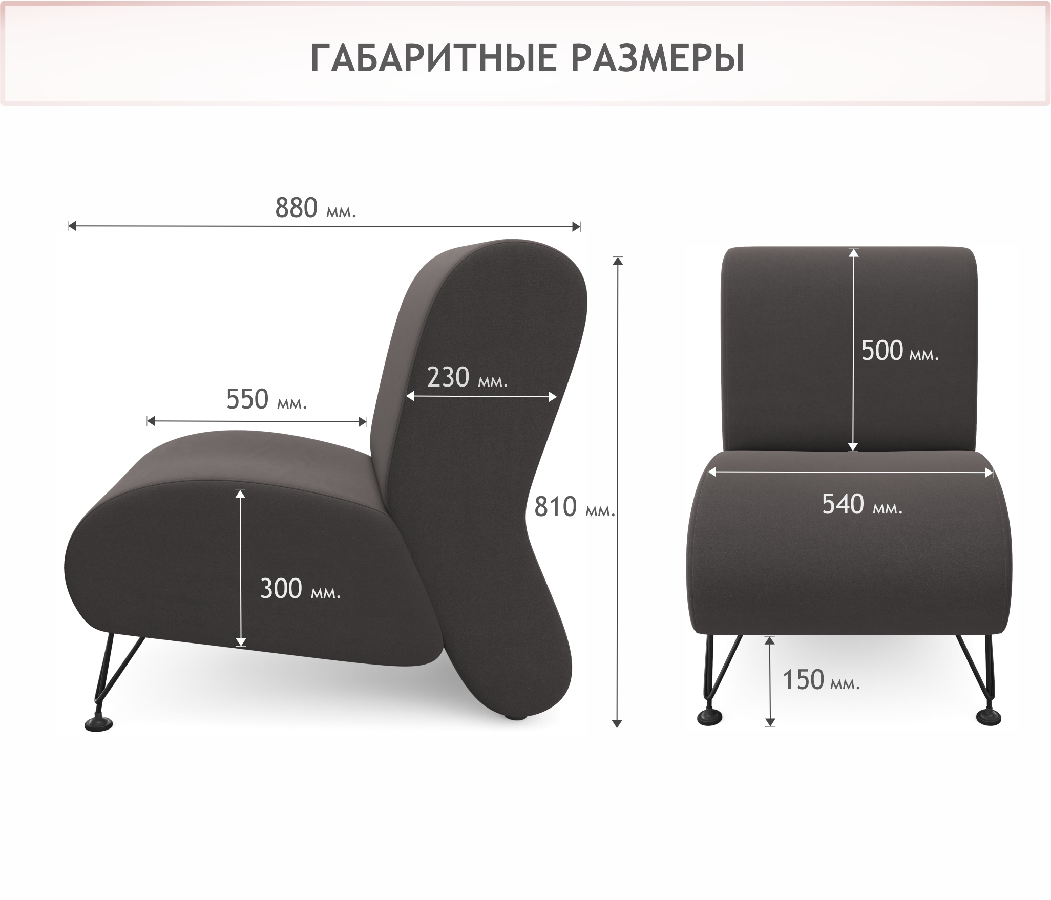 • Габаритные размеры кресла: 540*810*880 мм. (ш*в*г)
