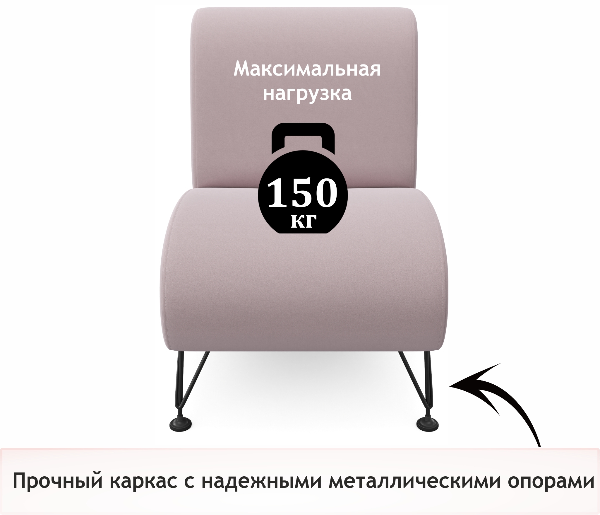 Устойчивые ножки и крепкая конструкция позволяет выдерживать нагрузку до 150 кг.! Передние опоры выполнены из метала, могут регулироваться в зависимости от неровностей пола.