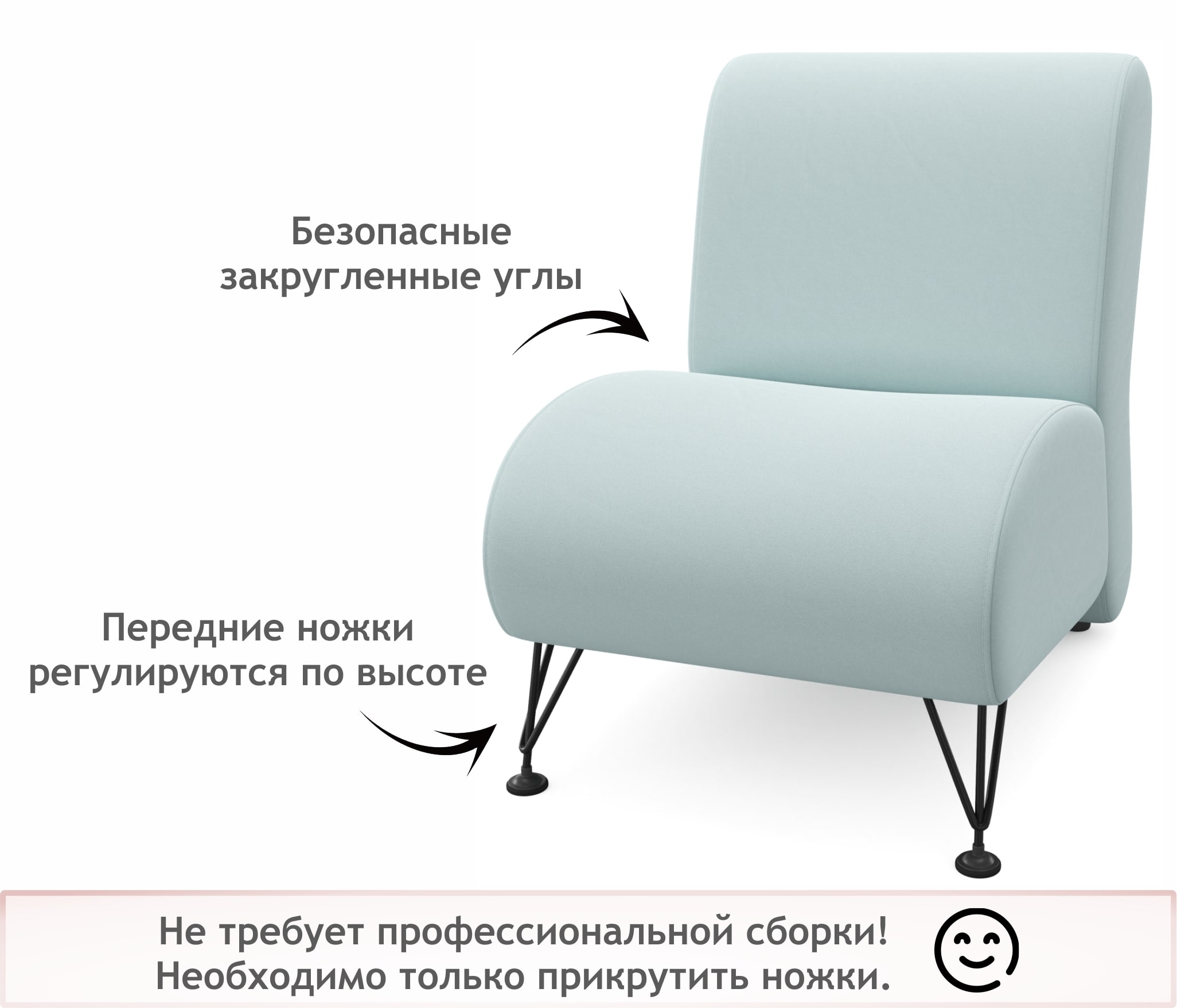 Устойчивые ножки и крепкая конструкция позволяет выдерживать нагрузку до 150 кг.! Передние опоры выполнены из метала, могут регулироваться в зависимости от неровностей пола.