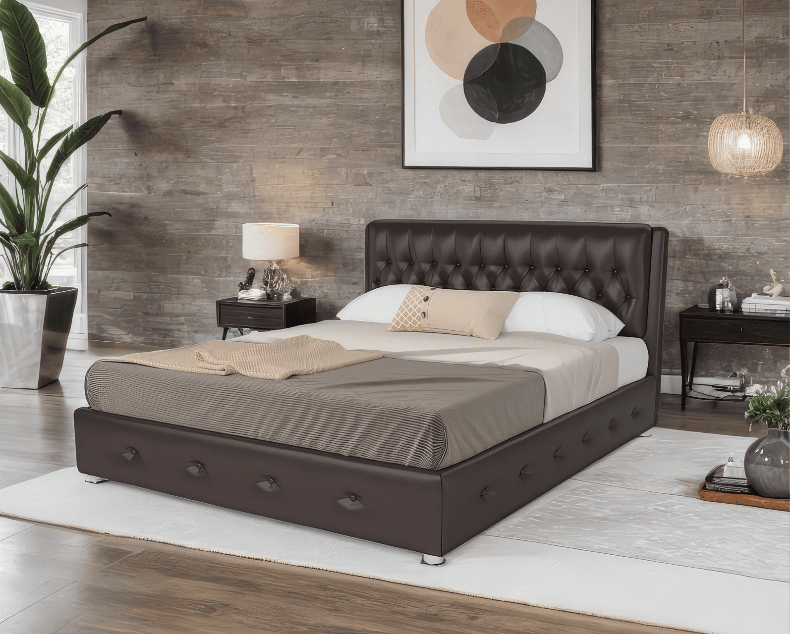 Обивка из экокожи приятна на ощупь, гипоаллергенна и хорошо пропускает воздух, создавая комфортное микроклимат в спальной зоне.