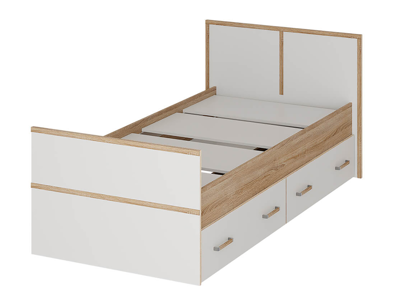 Односпальная кровать Сакура выполнена из ЛДСП высокого качества в контрастных цветах сонома и белый. Данная модель оснащена двумя выдвижными ящиками, в которых можно хранить постельные принадлежности или игрушки;