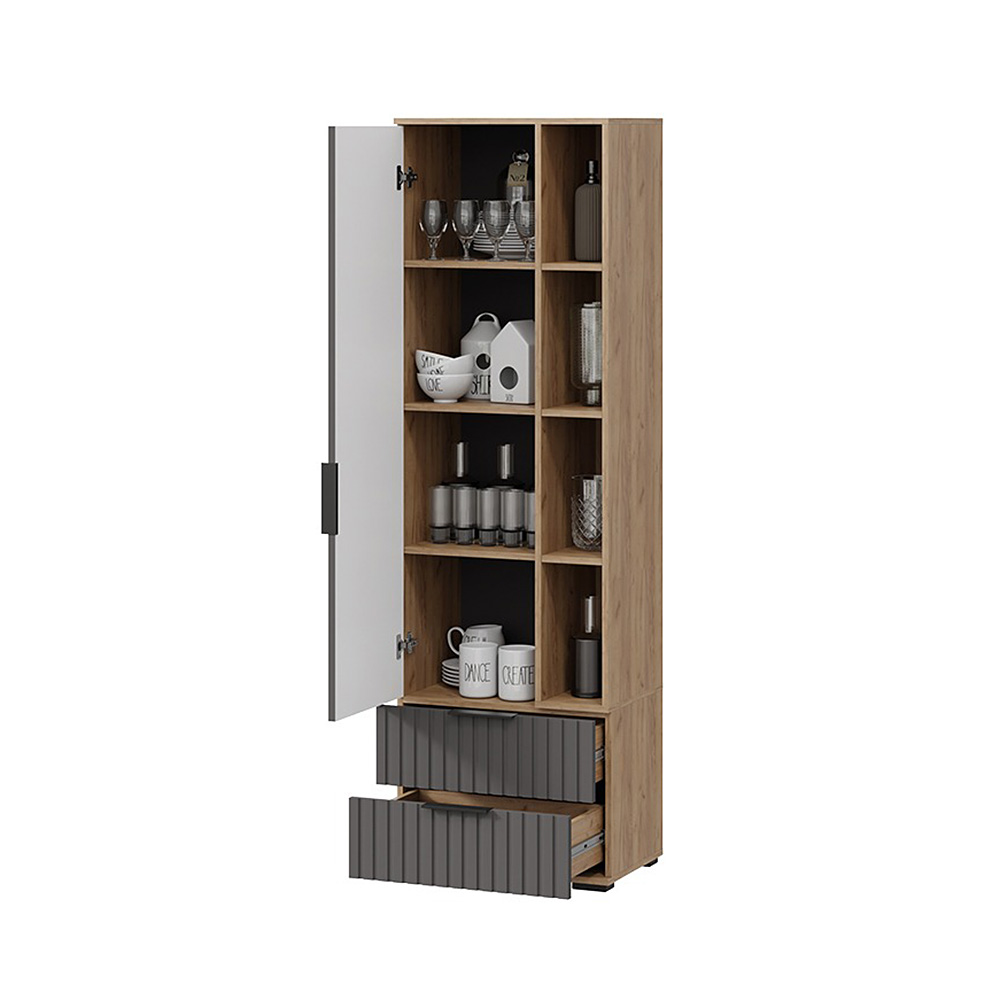 Шкаф для посуды Хилтон, дуб крафт золотой, графит матовый Код R0000304509