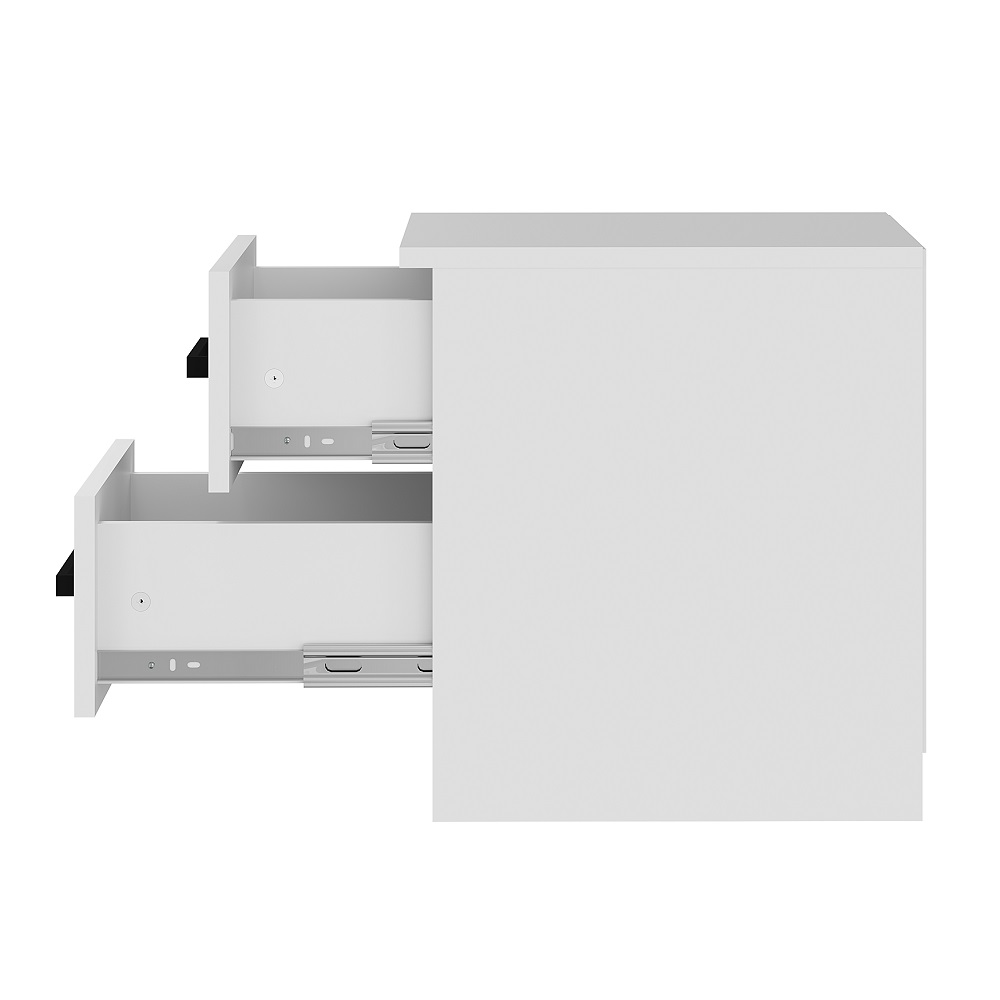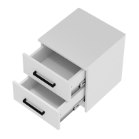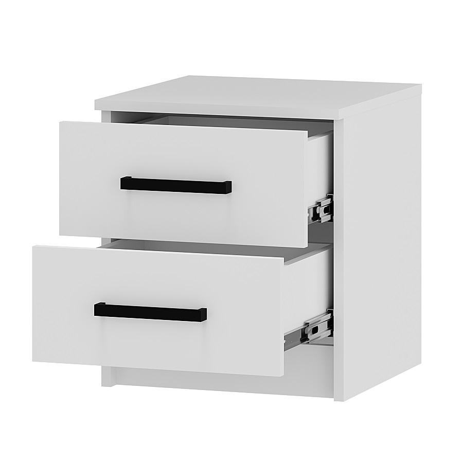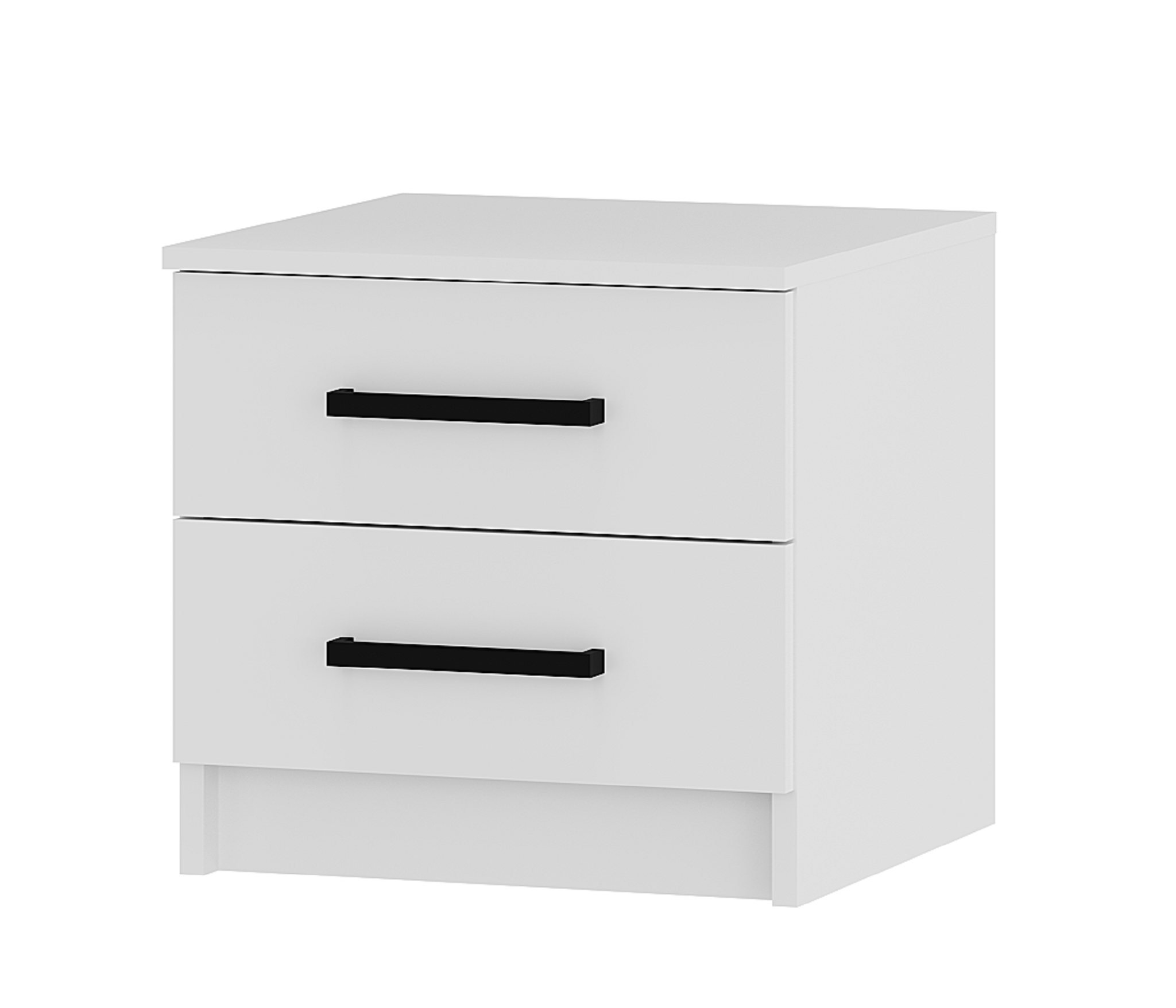Коллекция мебели для спальни Фьюжн является воплощением эстетики минимализма. Белый цвет в сочетании с черной фурнитурой, строгие линии, простой конструктив – все это лучшие черты мебельного дизайна. Прикроватная тумба дополнит мебельный гарнитур в спальне и позволят держать под рукой вещи, которые необходимы перед сном и после пробуждения: светильник, книгу, стакан воды и т.д.