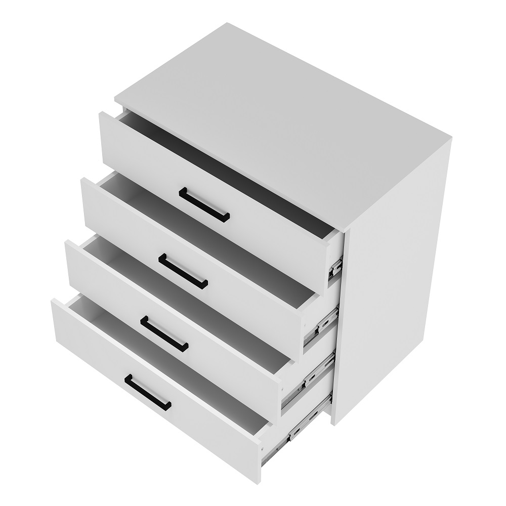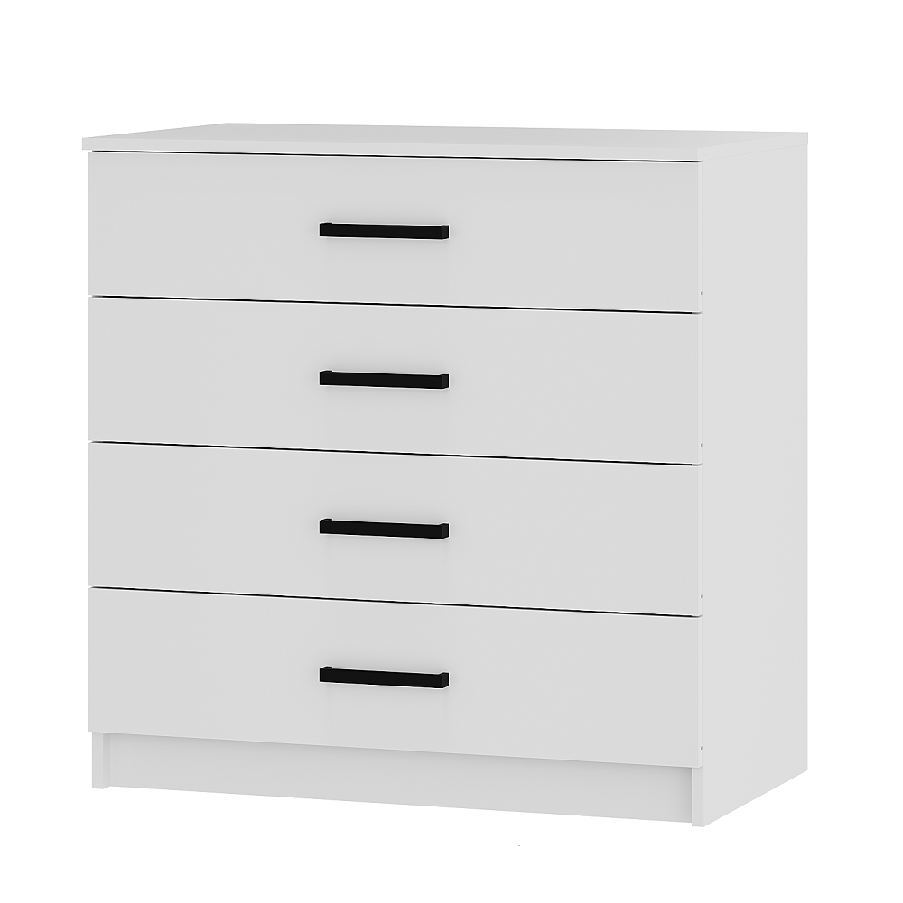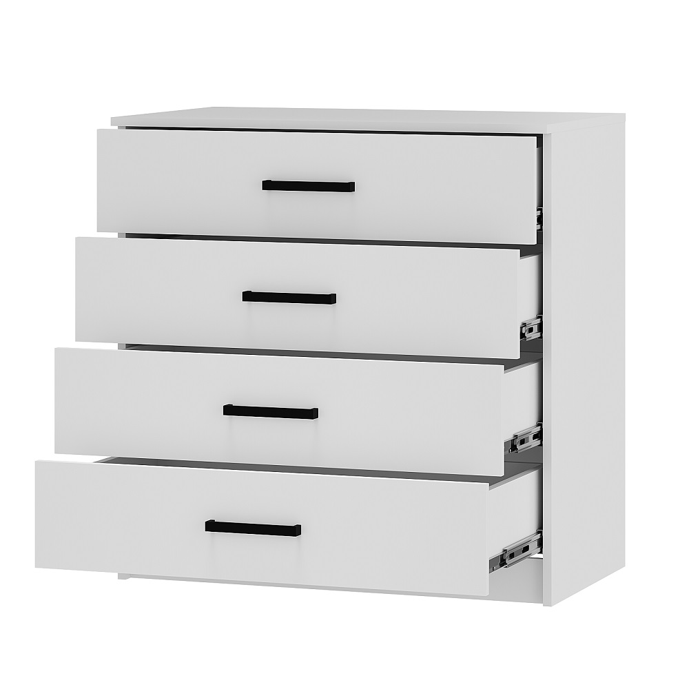 Коллекция мебели для спальни Фьюжн является воплощением эстетики минимализма. Белый цвет в сочетании с черной фурнитурой, строгие линии, простой конструктив – все это лучшие черты мебельного дизайна. Широкий комод с 4-мя ящиками на направляющих плавного выдвижения поможет организовать хранение вещей в сложенном виде, постельных принадлежностей, аксессуаров.