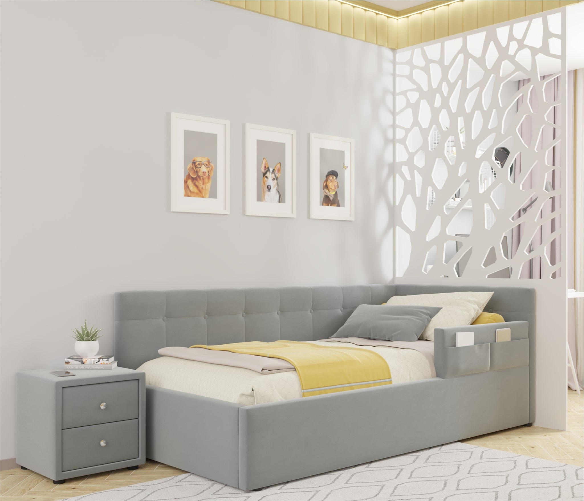 Отзывы о Столплит Односпальная кровать-тахта Bonna 900 с защитным бортиким и подъемным механизмом Серый