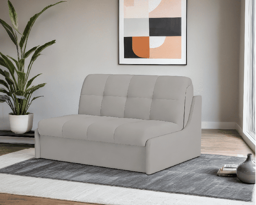 Модель выполнена без подлокотников, что увеличивает полезную площадь дивана, создавая дополнительное пространство для тела. Отсутствие подлокотников повышает удобство при очистке дивана, так как не нужно убирать загрязнения между ними.