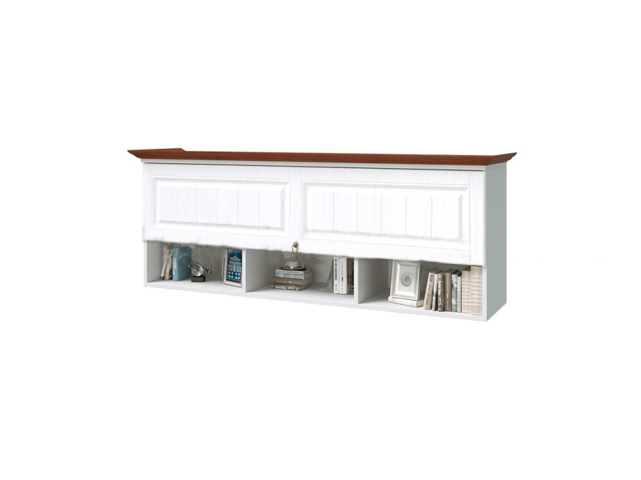Валенсия Полка навесная модель в стиле Прованс с 3 открытыми полками и секцией за подъемной дверью. Материал ЛДСП, карниз МДФ.