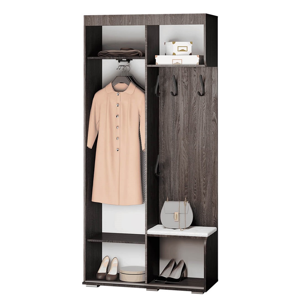 - Минимум пространства, при этом обеспечивает много места для хранения вещей. Пенал с двумя полками и выдвижной евроштангой. Наверху полка для головных уборов, внизу для обуви. Створка в пенале двигается по направляющим СТ, что способствует экономии места. Алюминиевая ручка удобна при открывании створки.
