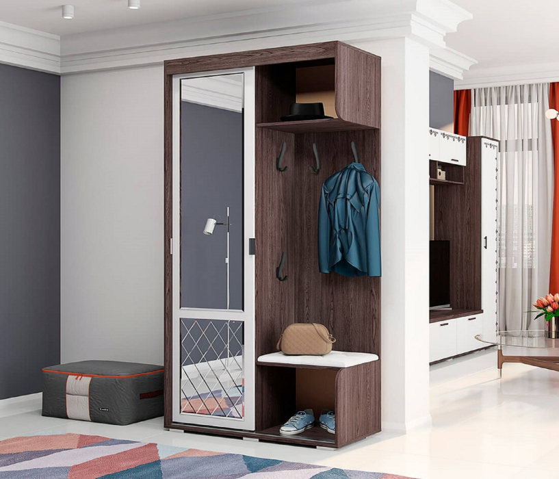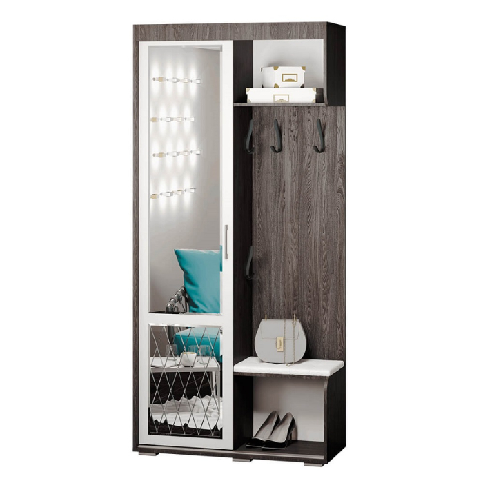 - Глубина прихожей 444 мм, поэтому данная модель прекрасный вариант для небольших прихожих комнат.