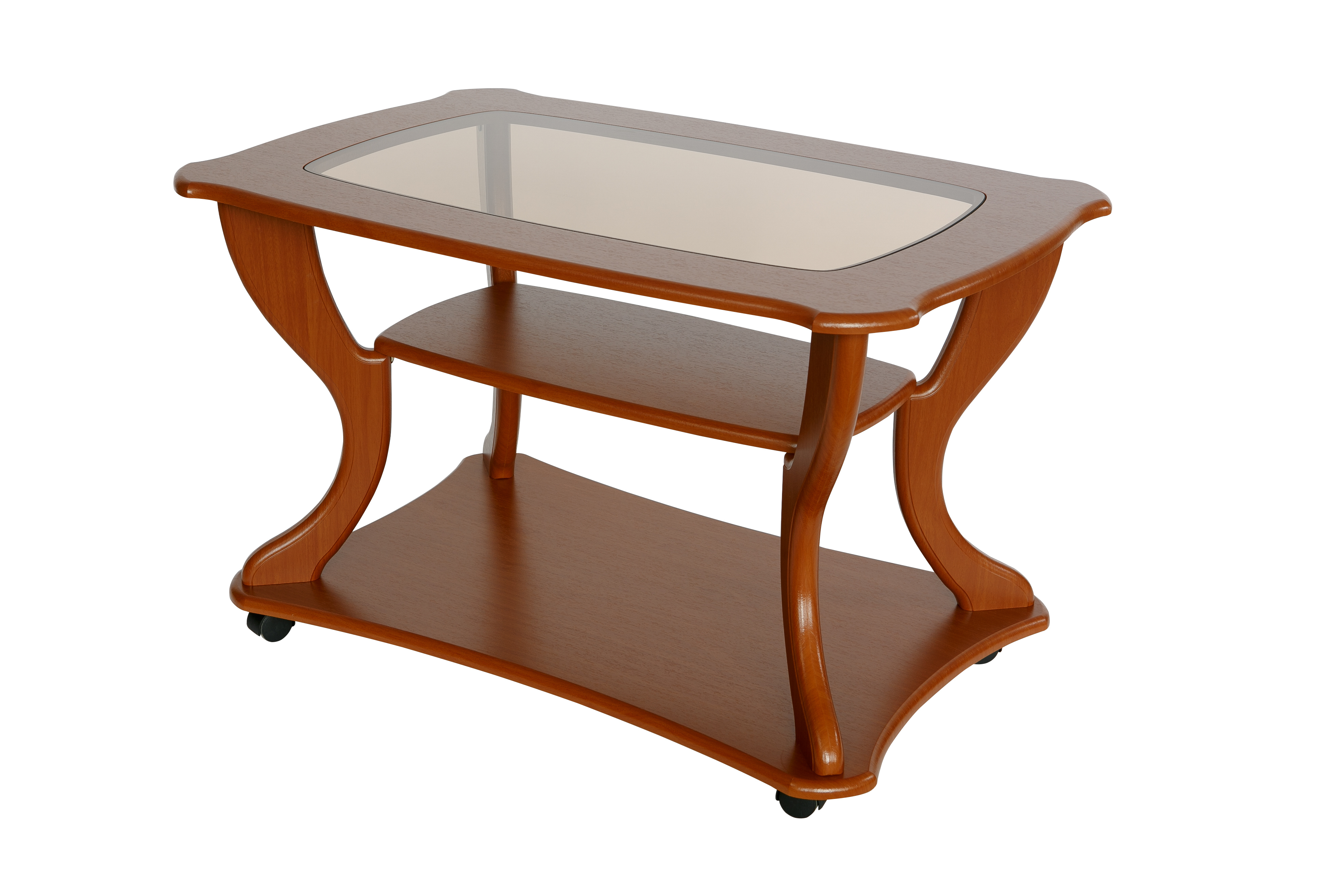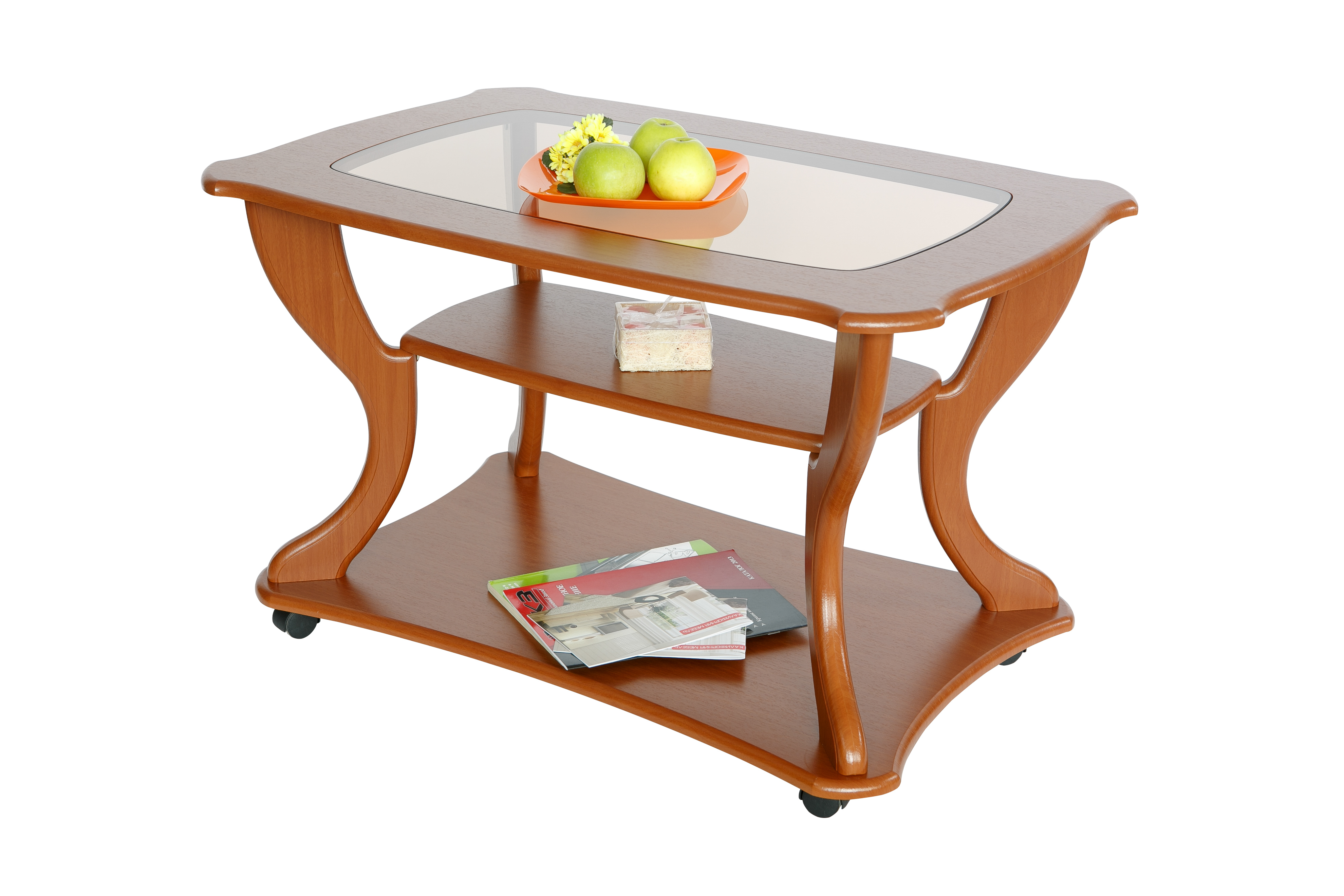 Журнальные столы со стеклянной столешницей несомненно будут украшением любой гостиной. Данная модель журнального стола - это прекрасный вариант для любого интерьера. Особую грацию столику придает столешница со стеклянной вставкой из матового или тонированного стекла (толщина 4 мм) в зависимости от цвета изделия. Матовое стекло используется при производстве столов в цвете дуб, венге, слива, тонированное-бук, ольха, вишня, орех.Стол дополнен полкой длиной 600 мм, шириной 300 мм и основанием на колесной опоре, что позволит легко перемещать его по комнате. Размер столешницы: длина 900 мм, ширина 600 мм, высота стола 560 мм.