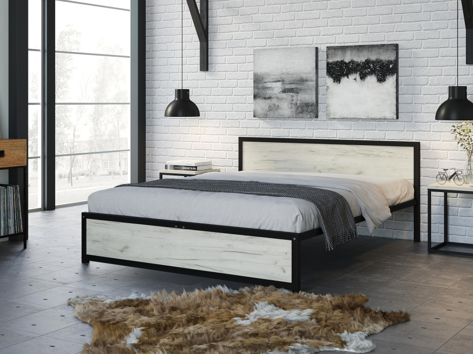 Отзывы о Столплит Кровать Титан Лофт 160 без ящиков (черный) Дуб крафт белый
