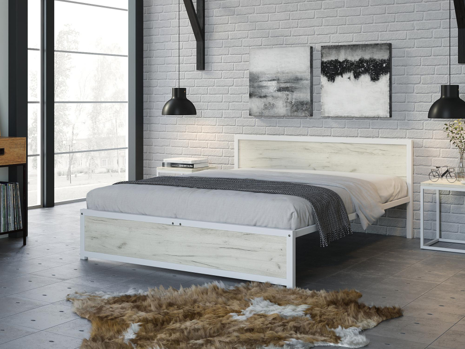 Отзывы о Столплит Кровать Титан Лофт 160 без ящиков (белый) Дуб крафт белый