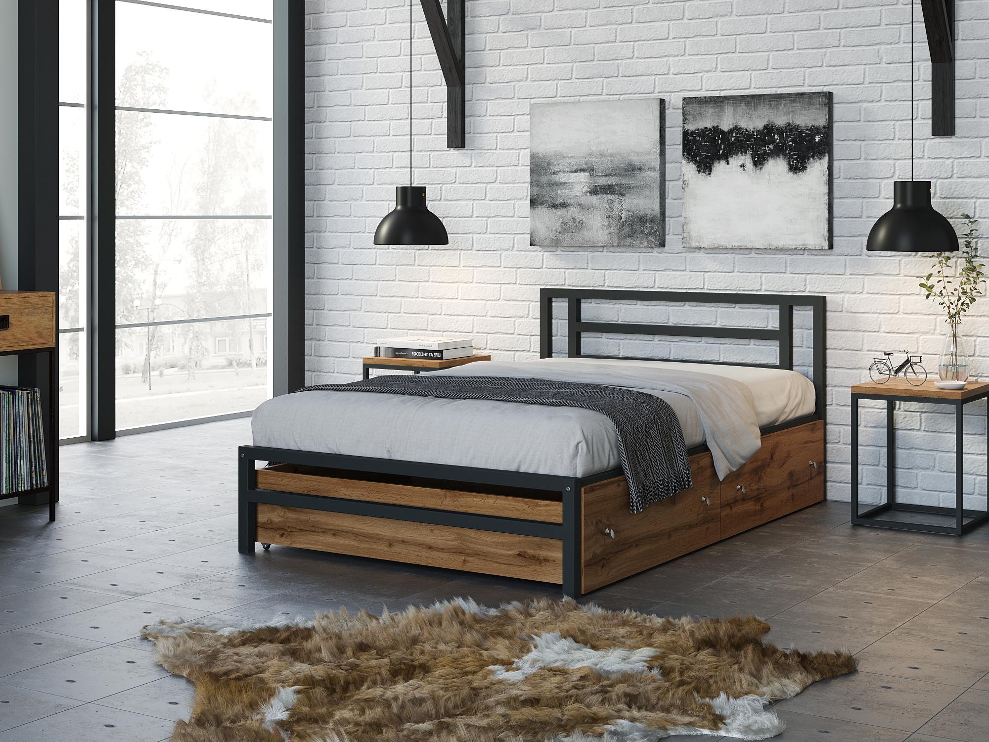 Отзывы о Столплит Полутороспальная кровать Титан 120 ящики дуб крафт табак Темно-серый