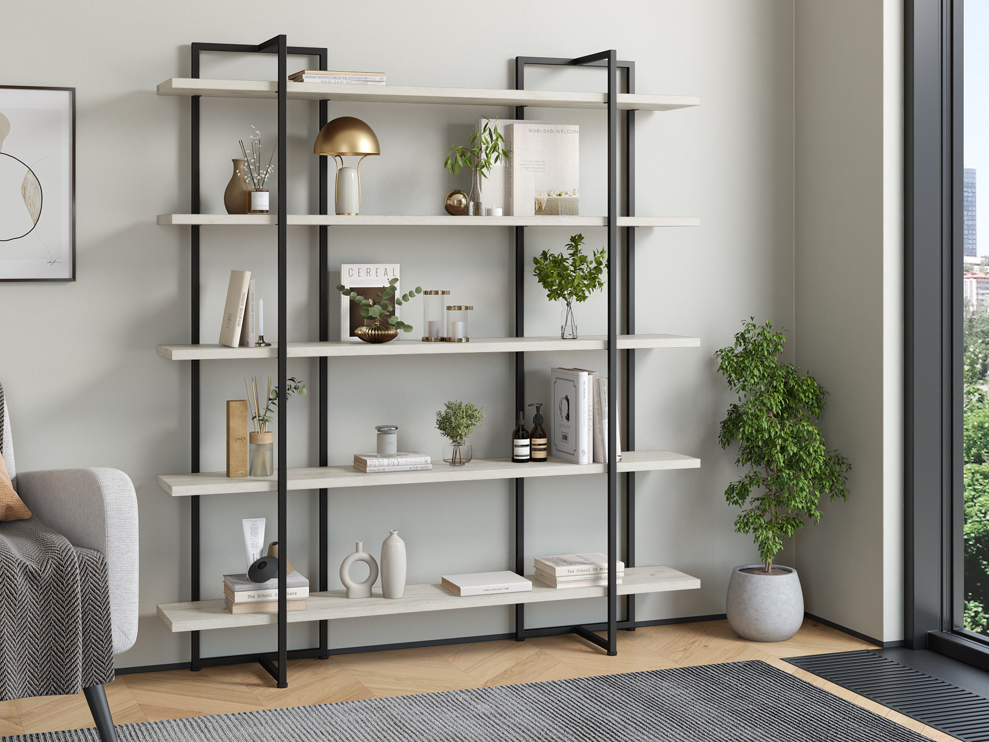 Стеллаж Айсберг Лофт Теон Черный (Дуб крафт белый)