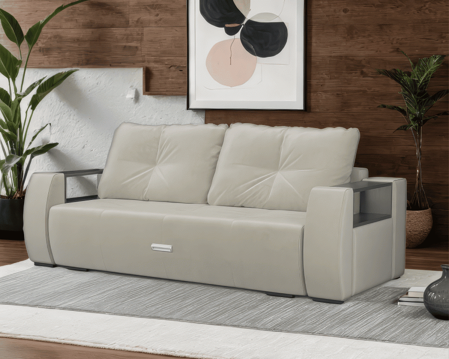 Отличительной особенностью дивана «Мальтида» выступает наличие каркасных подлокотников, образующих дополнительные подставки, что удобно для любителей пить кофе перед просмотром телевизора.