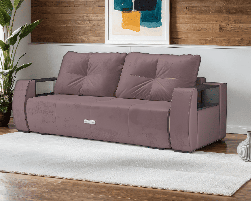 Отличительной особенностью дивана «Мальтида» выступает наличие каркасных подлокотников, образующих дополнительные подставки, что удобно для любителей пить кофе перед просмотром телевизора.