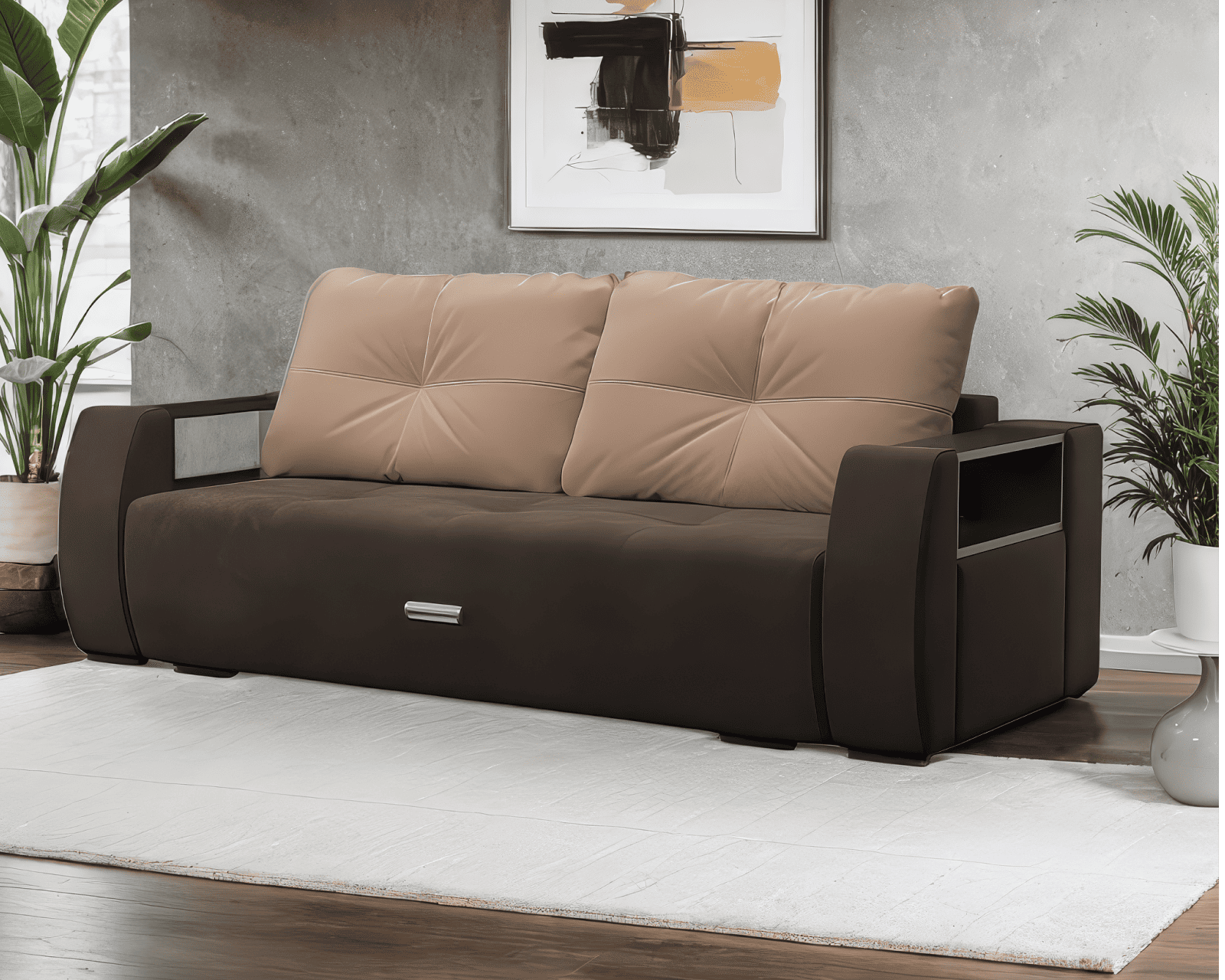 Отзывы о Столплит Диван прямой еврокнижка Мальтида (Велюр) Темно-коричневый/ Бежевый