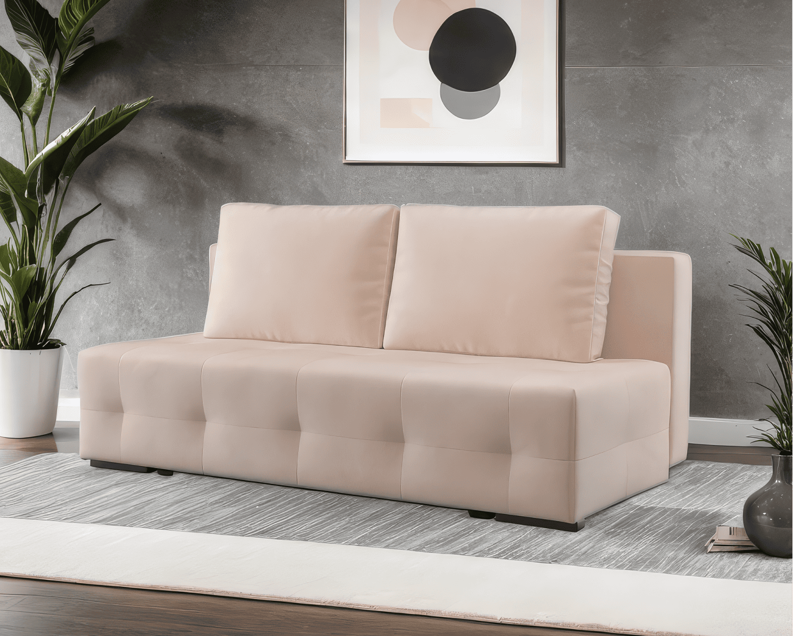 Модель отличается компактностью в сложенном состоянии, что позволяет сохранить свободное пространство в комнате. Разложенный диван предлагает полноценное спальное место размером 150х198 см.