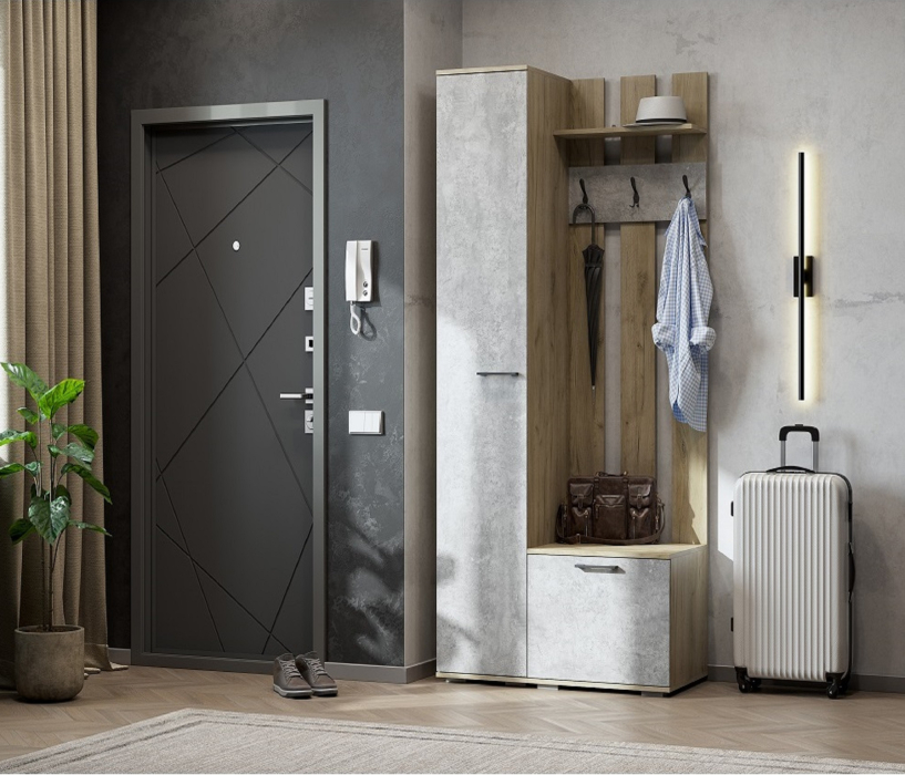 Вешалка и пенал Бостон выполнены в стиле лофт и благодаря компактным габаритам поместятся в любой по площади входной зоне. Пенал оснащен полками.