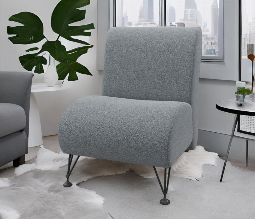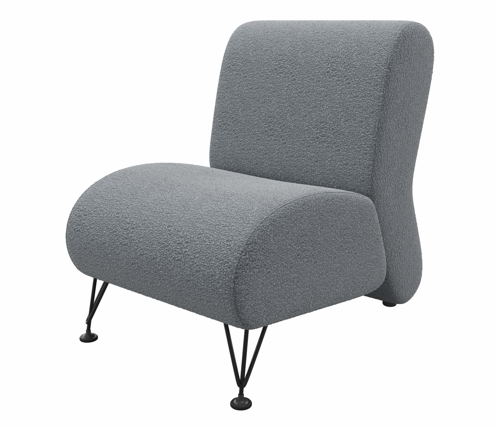 Интерьерное кресло Pati (Пати) из ткани букле (барашек) имеет мягкую высокую спинку с аккуратной декоративной прострочкой.