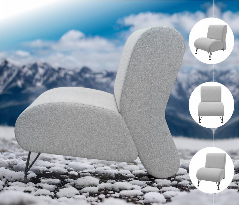 Интерьерное кресло Pati (Пати) из ткани букле (барашек) имеет мягкую высокую спинку с аккуратной декоративной прострочкой.