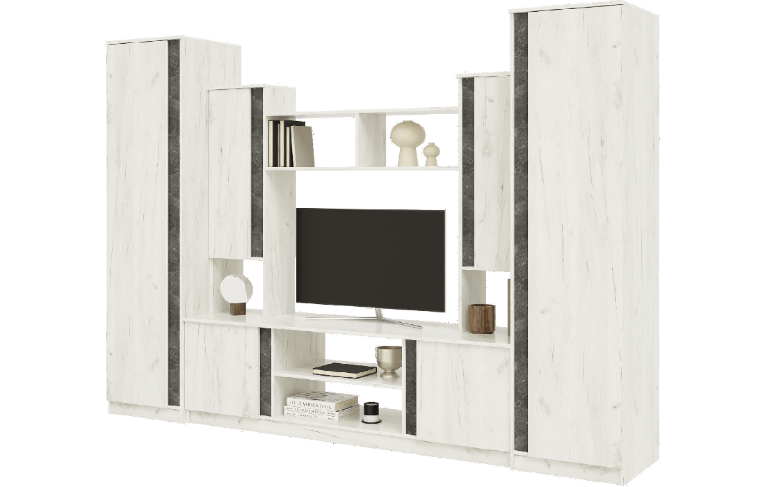 •тумбой ТВ с 2 секциями за распашными дверьми и полкой;