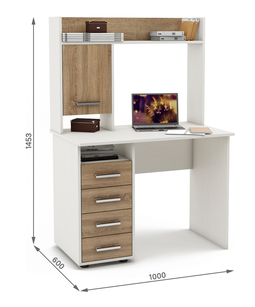 Письменный стол Остин-12 с надстройкой и 4 ящиками - комфортное и стильное решение для учебы или работы. Благодаря надстройке и ящикам, у вас всегда будет все необходимое под рукой.
