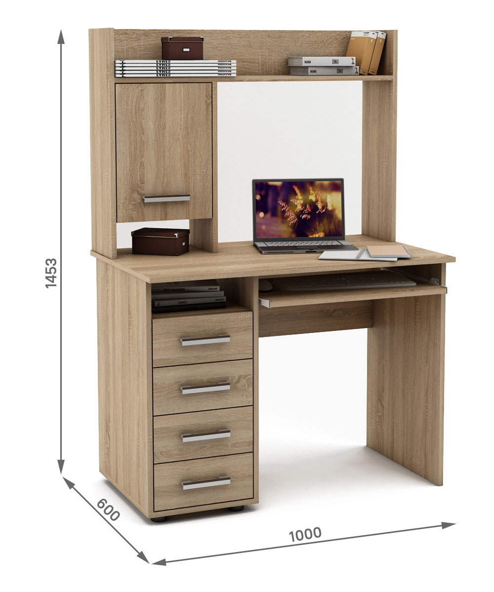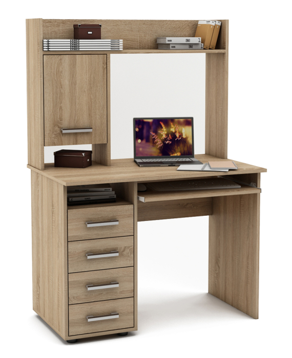 Письменный стол Остин-12К с надстройкой - удобное и просторное решение для работы и учебы. Оснащен четырьмя ящиками и полкой для клавиатуры, чтобы всё было под рукой.