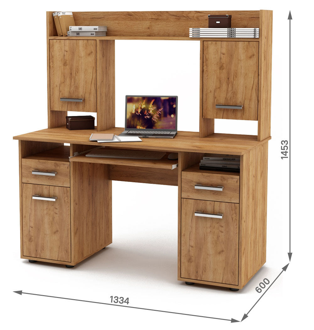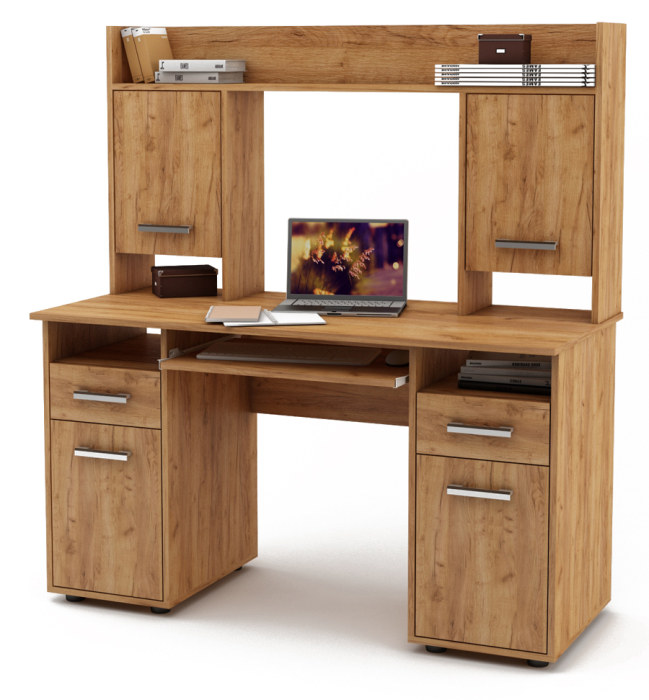 Письменный стол Остин-13К с надстройкой и полкой под клавиатуру. Идеальное решение для организации рабочего пространства с множеством ящиков и полок для хранения и удобного размещения вещей.