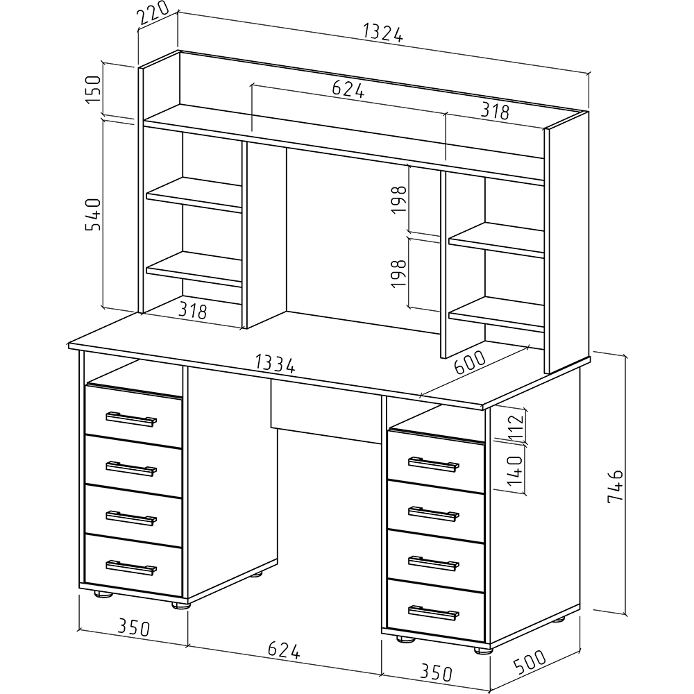 Глубина: 600 мм.