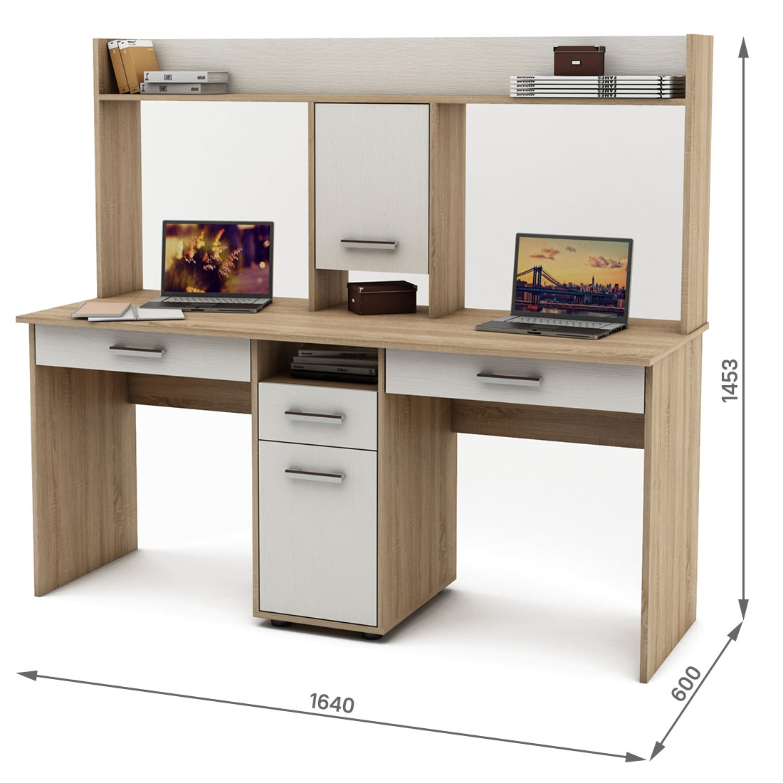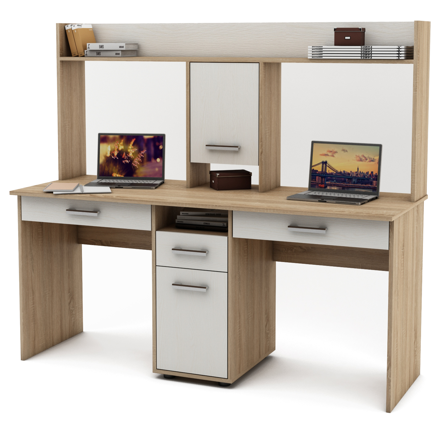 Письменный стол Остин-15Я для двоих с ящиками и надстройкой - идеальное решение для хранения и организации рабочего пространства. Стильный и функциональный.