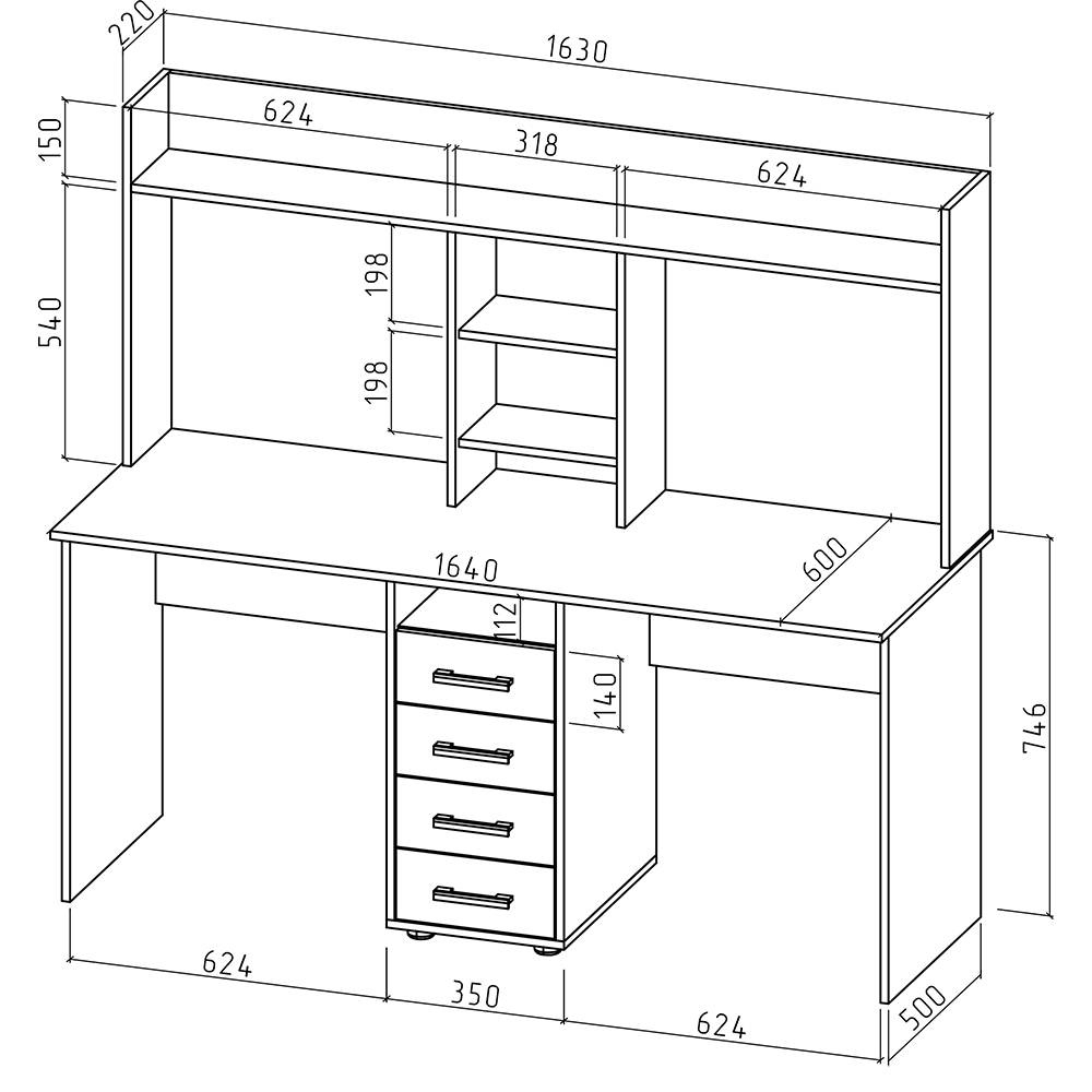 Письменный стол Остин-16 - идеальное решение для пары. С 4 ящиками для хранения и удобной надстройкой для организации рабочего пространства. Будьте продуктивны вместе!