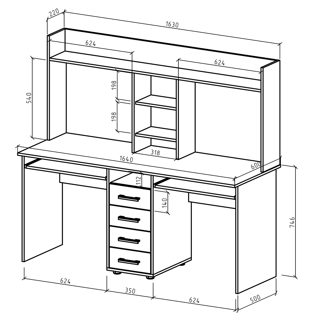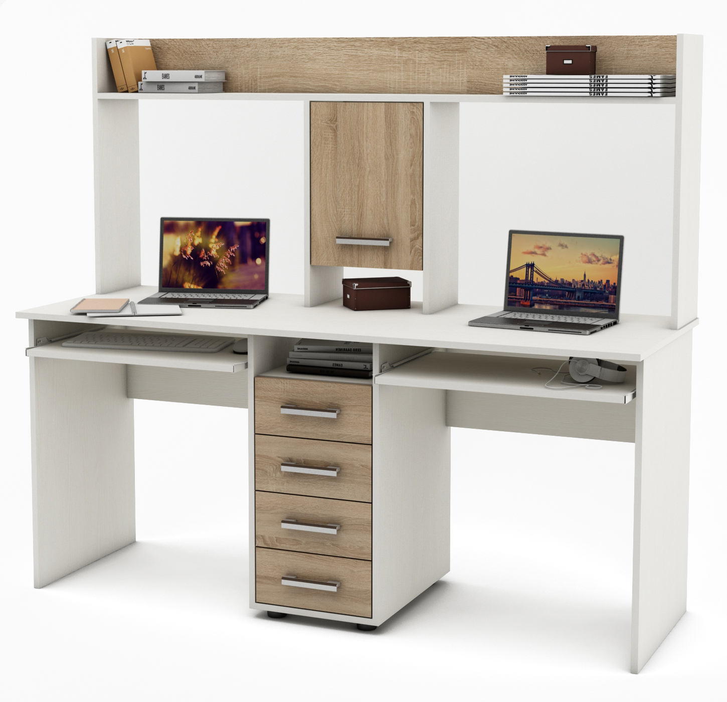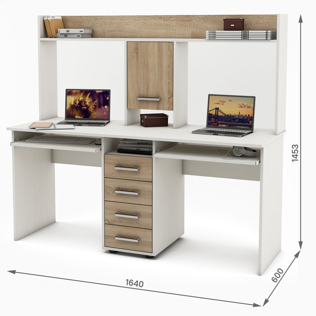 Письменный стол для двоих Остин-16К - стильный и функциональный, с 4 ящиками для хранения и удобной полкой для клавиатуры. Надстройка добавляет дополнительное пространство для организации рабочей зоны.