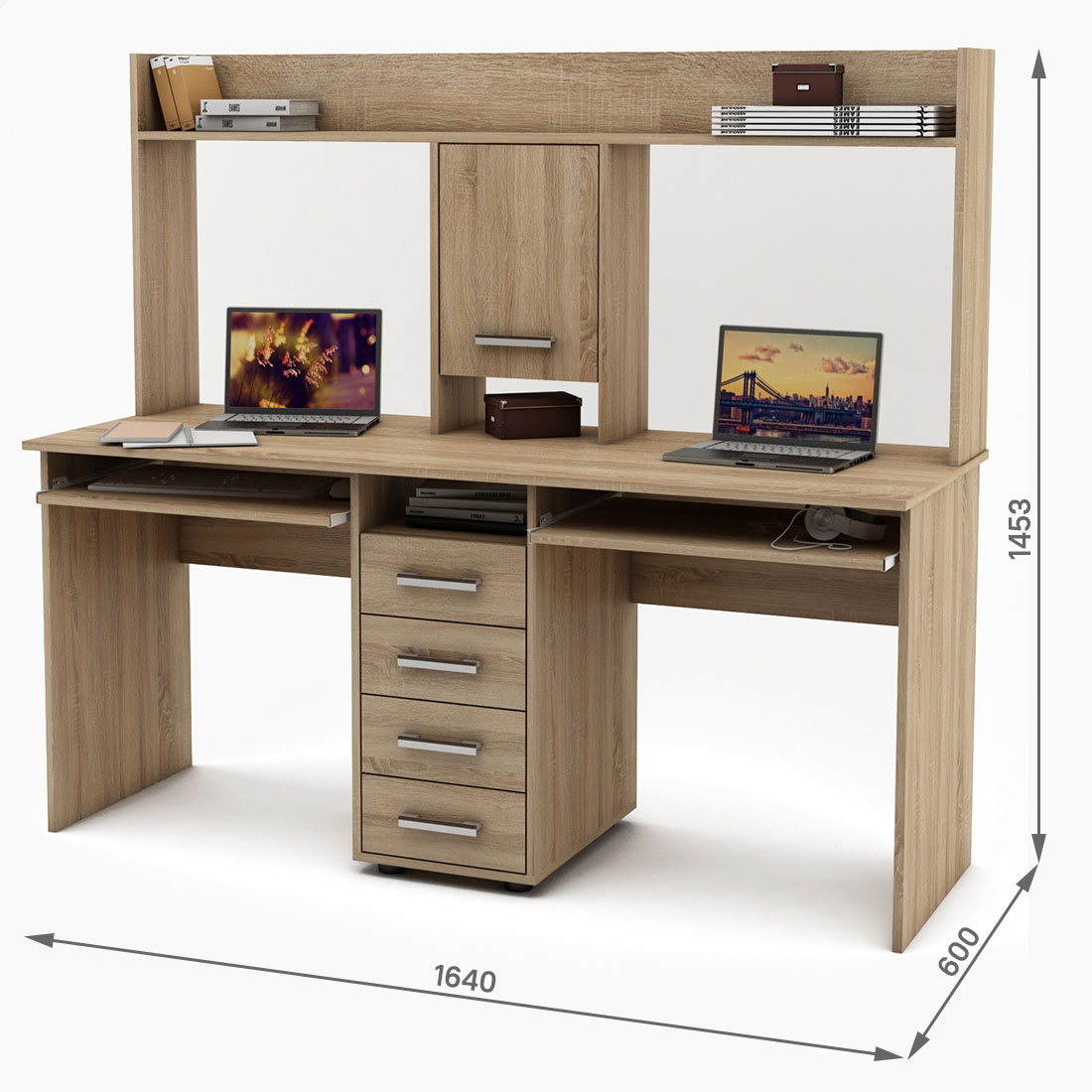 Письменный стол для двоих Остин-16К - стильный и функциональный, с 4 ящиками для хранения и удобной полкой для клавиатуры. Надстройка добавляет дополнительное пространство для организации рабочей зоны.
