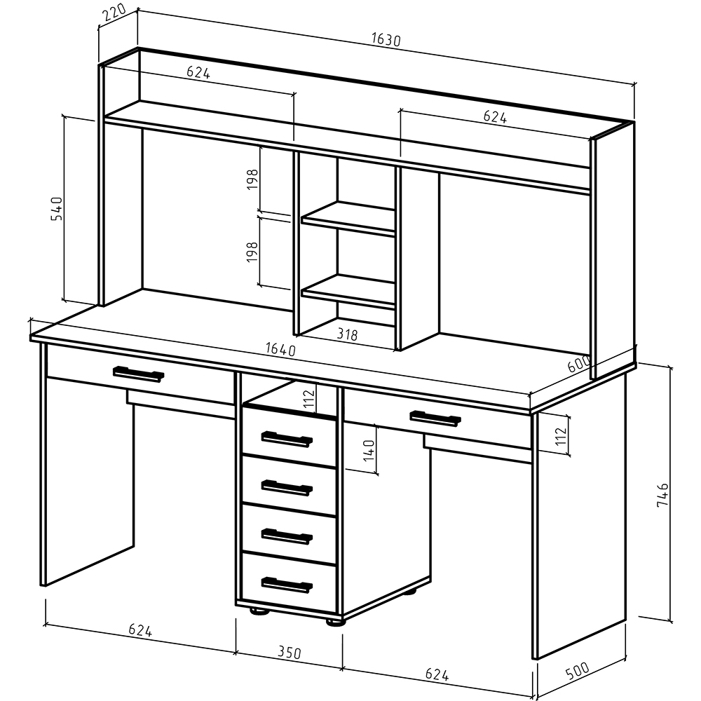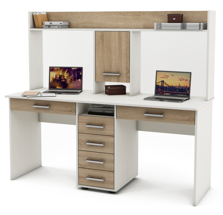 Письменный стол Остин-16Я идеально подходит для двоих. Он оснащен 6 ящиками для хранения и дополнительной надстройкой для книг и документов.